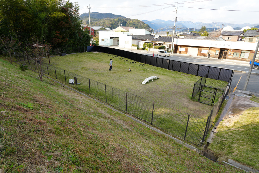 湯田温泉スマートICから車で約5分、「西京の森どうぶつ病院」に併設されたドッグランは、安心感と開放感が両立した施設。何より心強いのは、動物病院が運営しているということ!