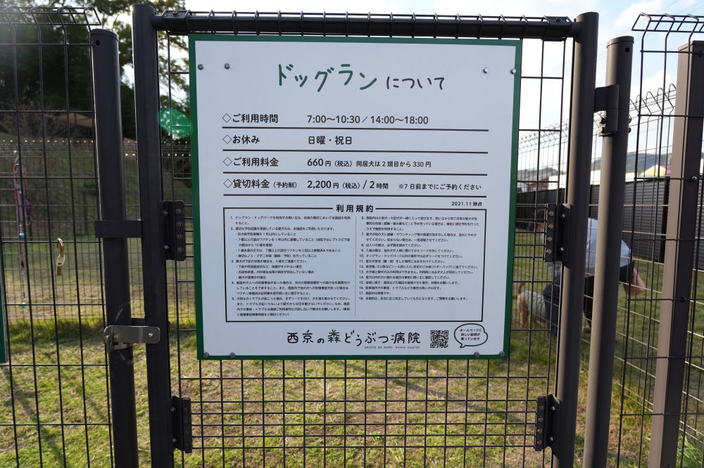 利用の際は西京の森どうぶつ病院にて受付を行います。ドッグランの利用は、動物病院の診療時間と同じになっているので、事前に利用時間をしっかりチェックしておいてくださいね!