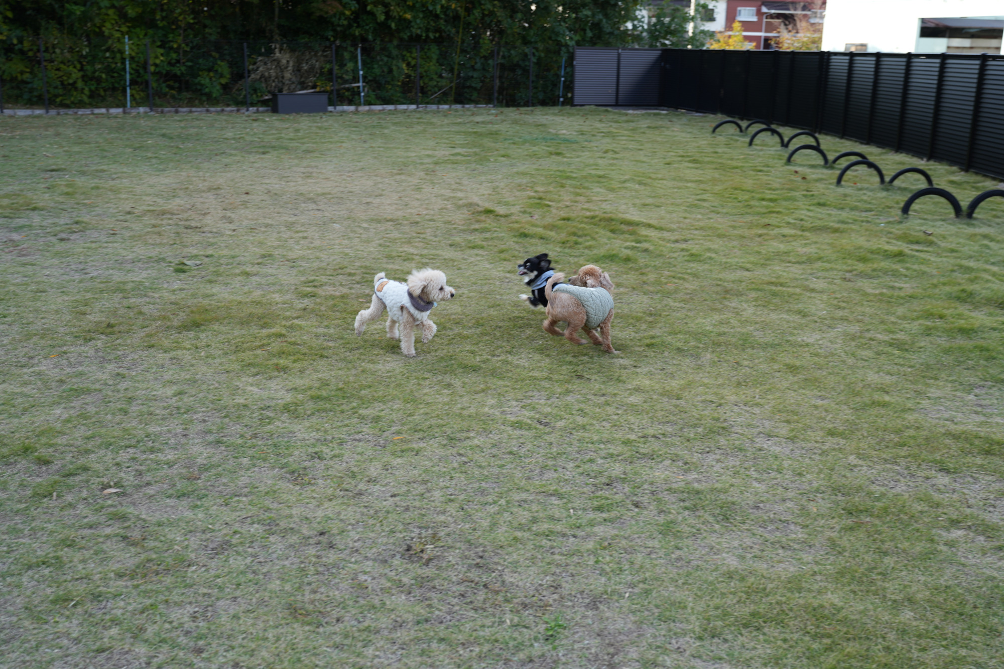 新しい友達と一緒に、広大な敷地を走りまわって大満足のご様子♪