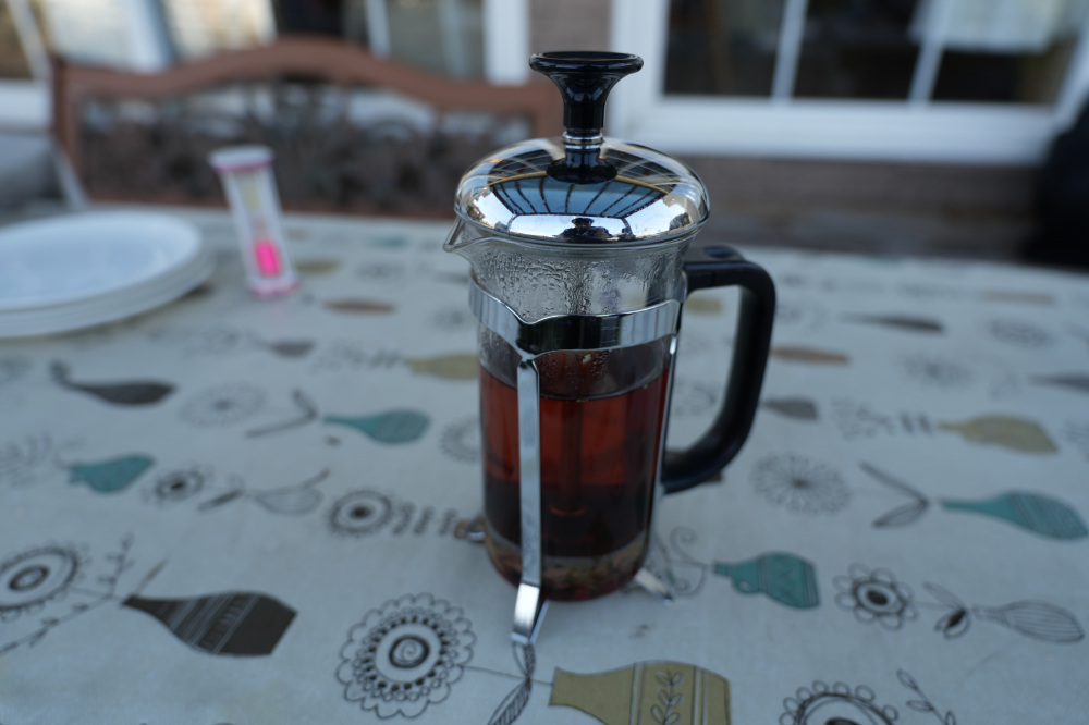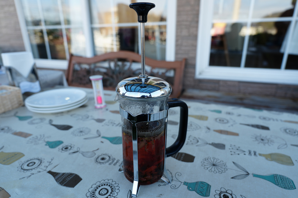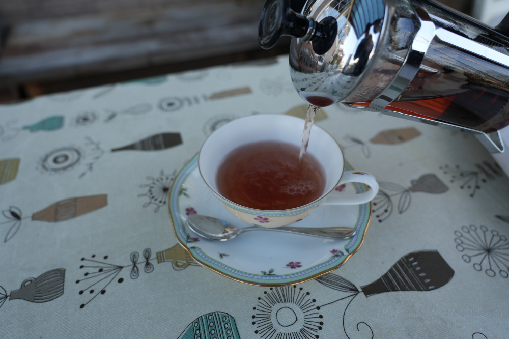ローズヒップティーは、お洒落なティープレスで出てきました。