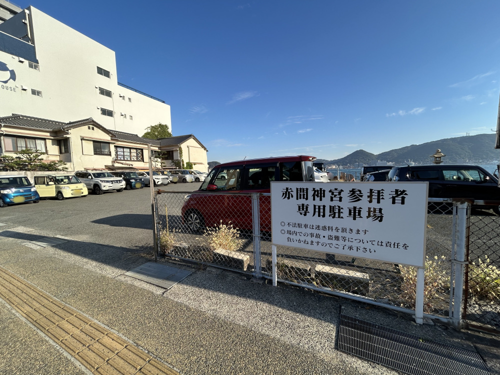 赤間神宮には、参拝者が利用できる無料の専用駐車場があります。