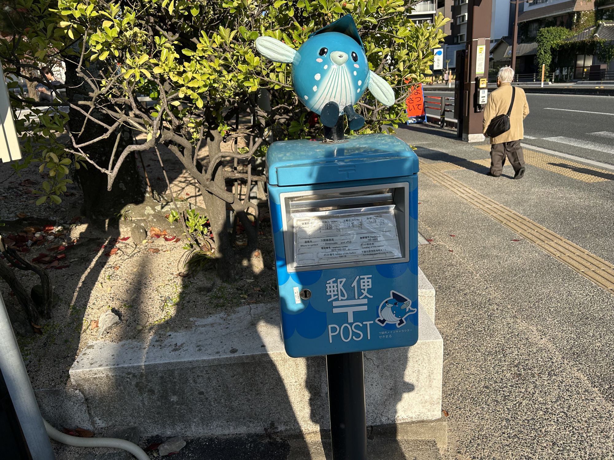 鳥居の右手側に下関市メインキャラクター「せきまる」が乗ったポストを見つけました!