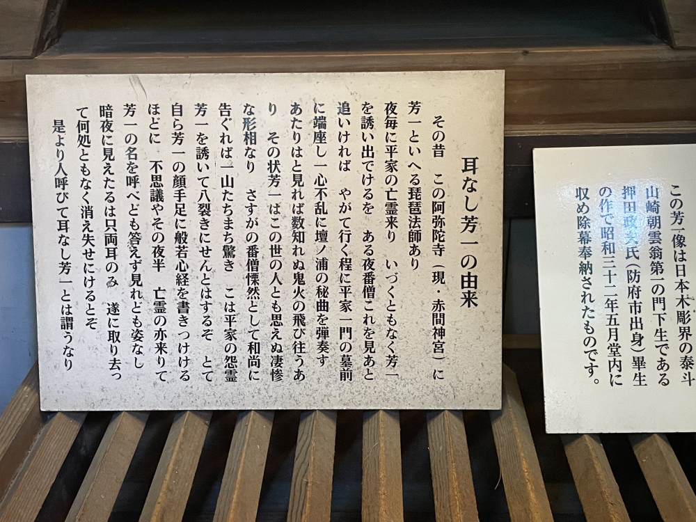 境内には、耳なし芳一堂や平家一門の史跡が点在し、神秘的な空気と旅情が同時に味わえるのが魅力です。