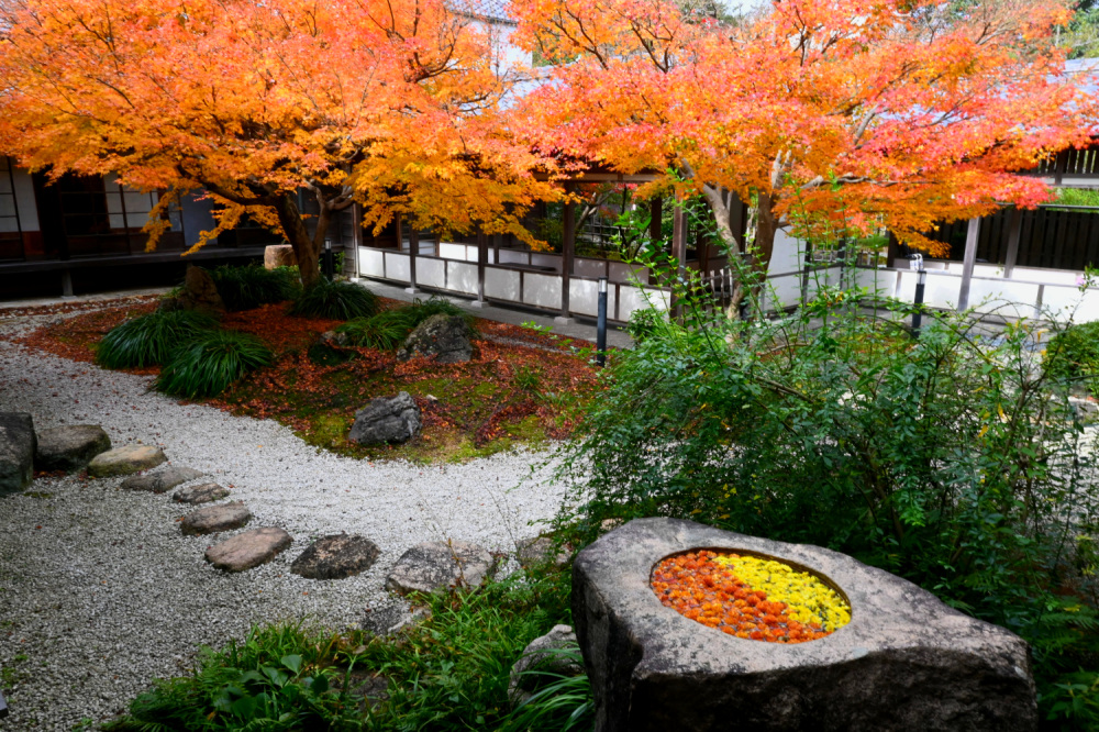燃えるようなモミジに心を動かされ、志士たちの足跡に思いを馳せ、路地や小道でふと立ち止まる。