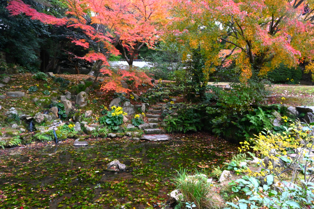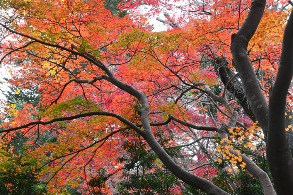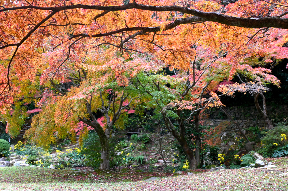 帰り道、そしてその日の夜になっても、寺の木立や庭園に重なって見た赤や橙のコントラストが、ふと脳裏によみがえってきましたよ