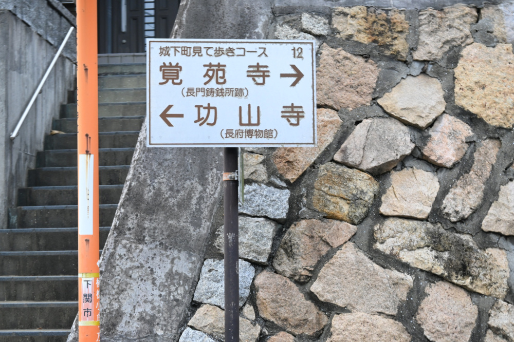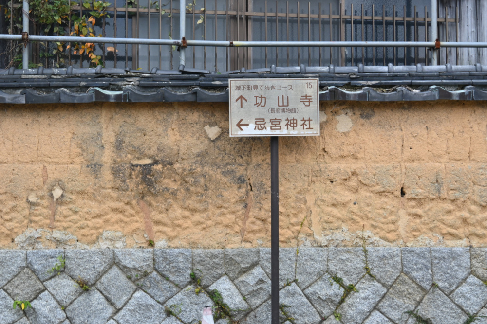 長府は観光案内の標識が多いので、城下町らしい風情がぎゅっとつまった路地歩きを楽しめるのが魅力