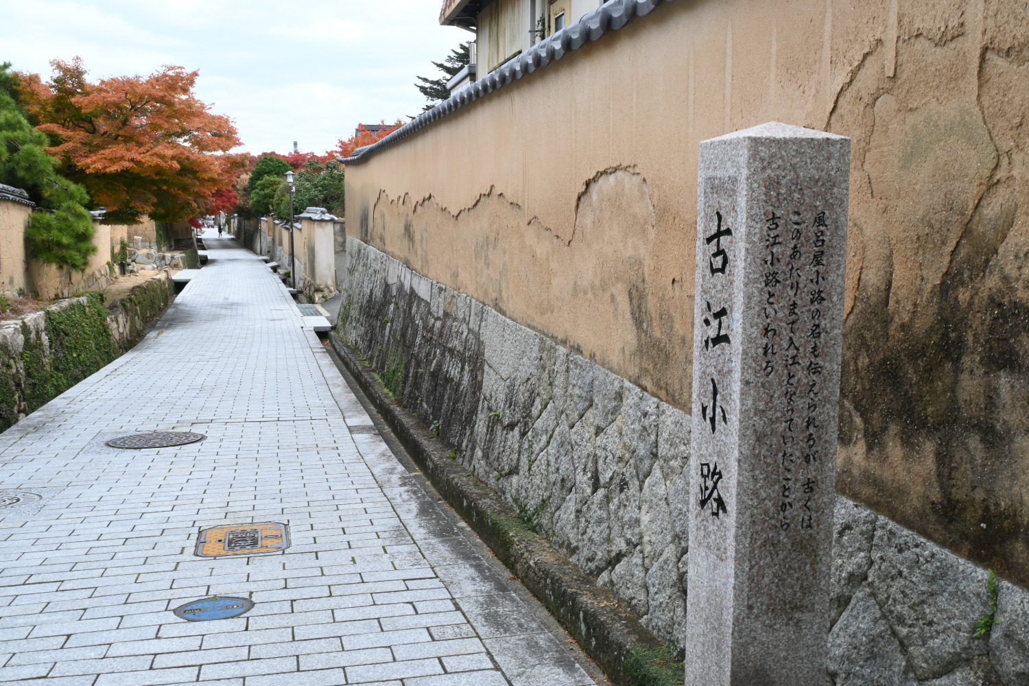 途中にある「古江小路(ふるえしょうじ)」は、土壁が続く小道。