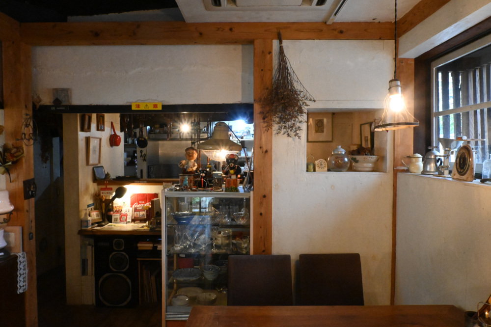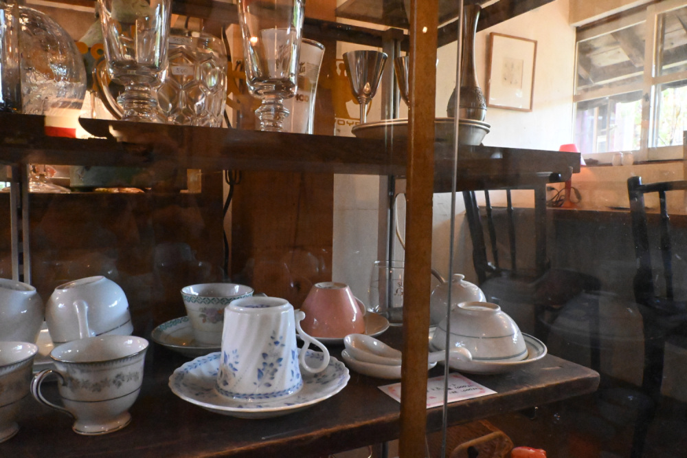 店内には、古道具や古家具がさりげなく並び、販売されているものもあります。