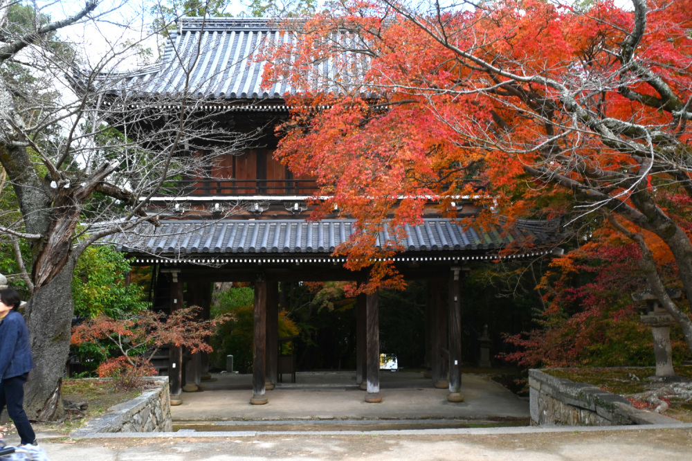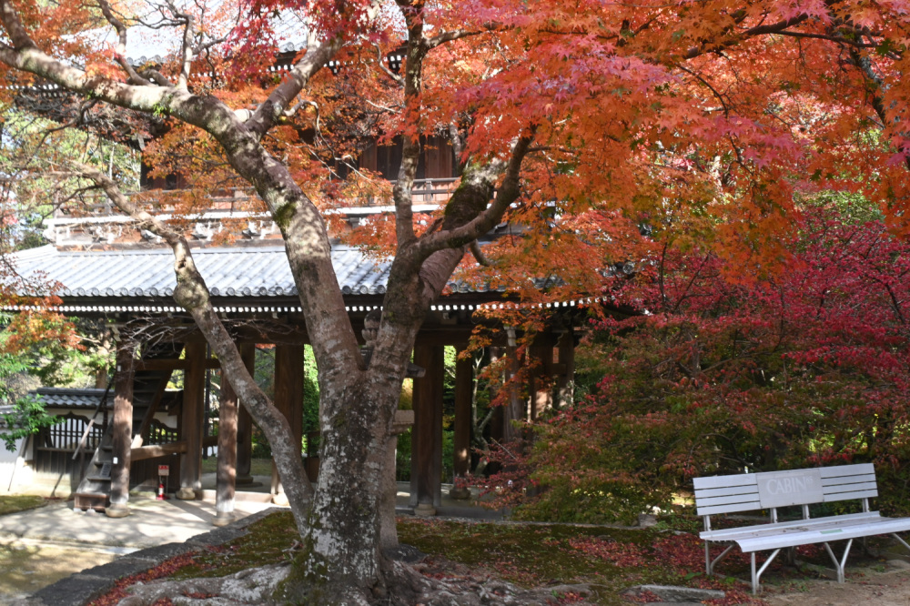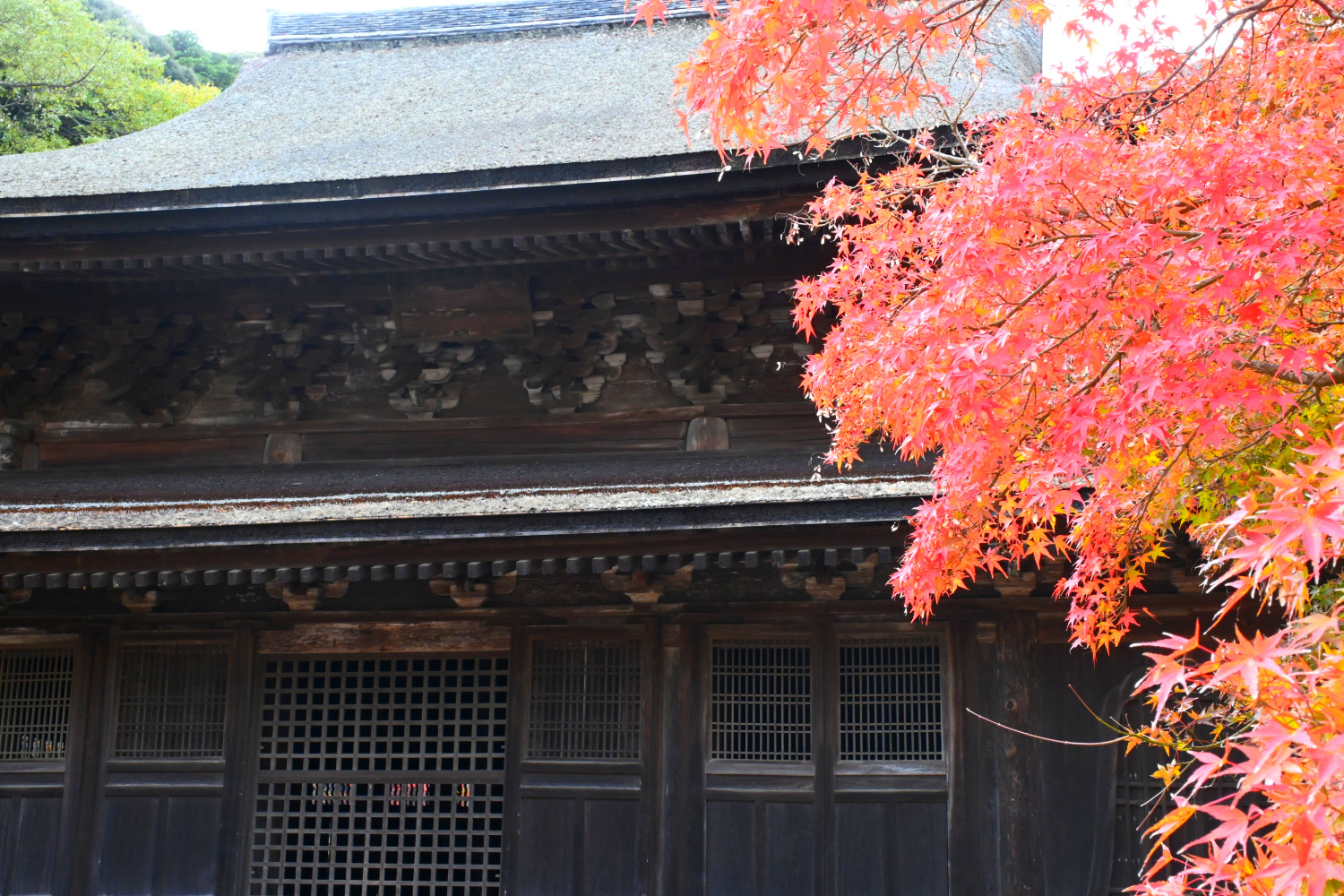 仏殿の渋い木肌とモミジの鮮やかなコントラストが本当に素晴らしかったです。