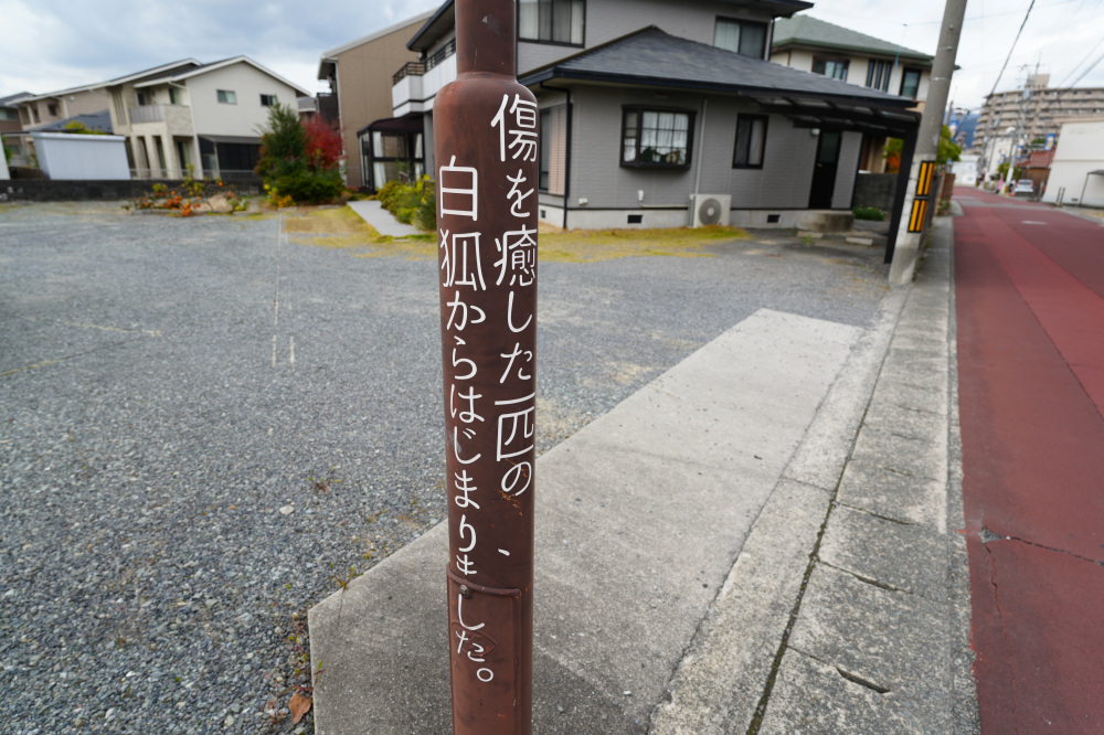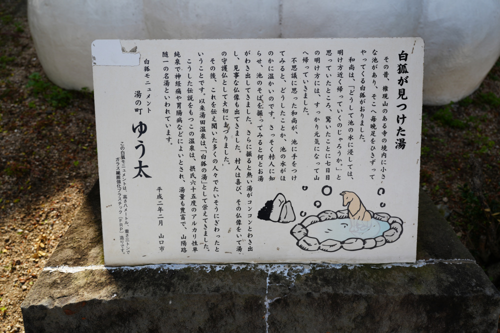 湯田温泉の街には、白狐をモチーフにしたオブジェやポストなどがあちこちにあって白狐伝説の名残を感じることができますよ