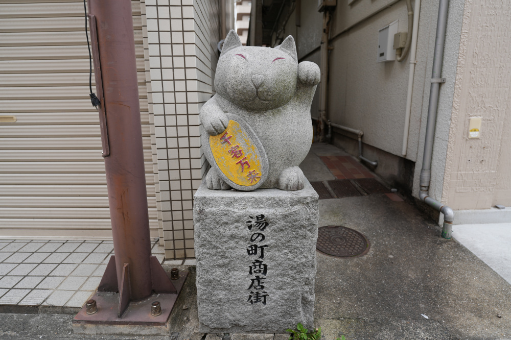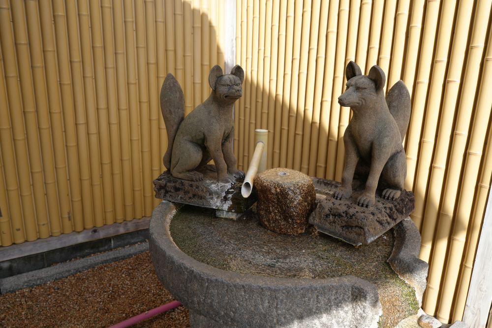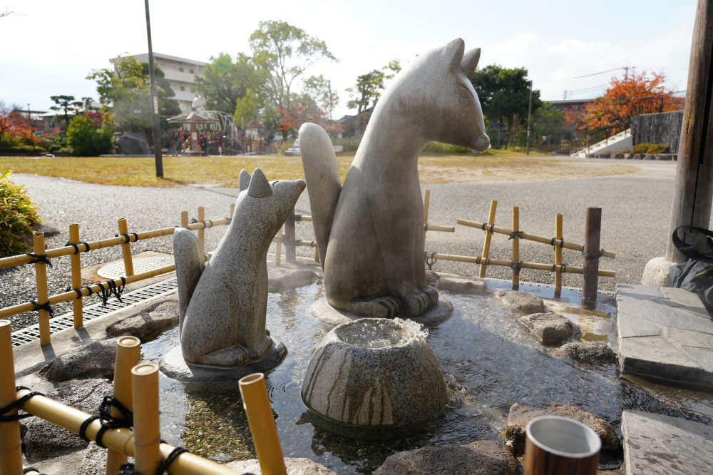 また、こちらの湯口の白狐像は今までの可愛らしい雰囲気とは異なり、凛々しい表情をしていて驚きでした!湯口のデザインや周囲の雰囲気もスポットごとに異なるので、各足湯の個性を楽しんでみるのもいいかもしれませんね♪