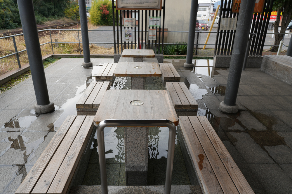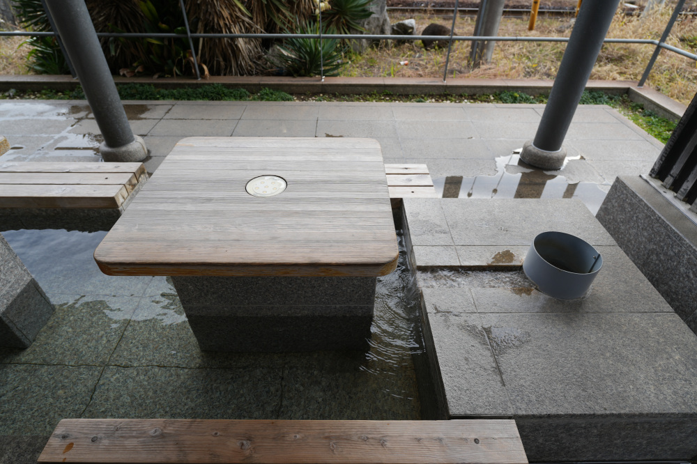 ここの足湯の特徴は、ほかではあまり見られないテーブル付きの造り!読書をしたり、旅の計画を立てたり、飲み物を置いたりと、ゆっくり腰を落ち着けて過ごせるのが魅力です