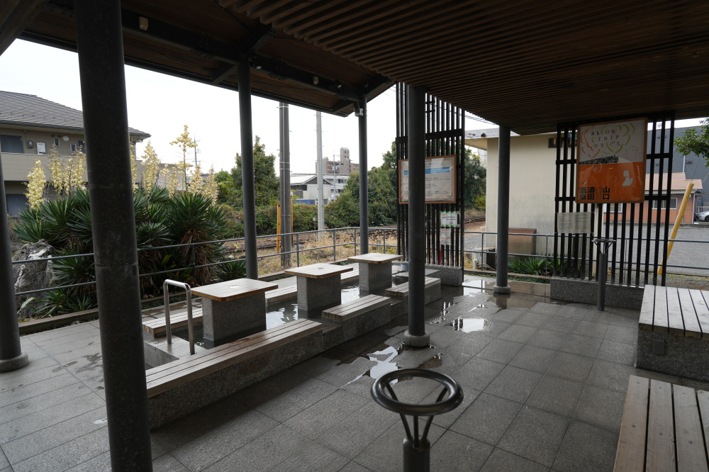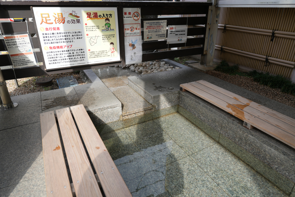①無料足湯|湯田温泉駅前:列車を眺めながら楽しめる