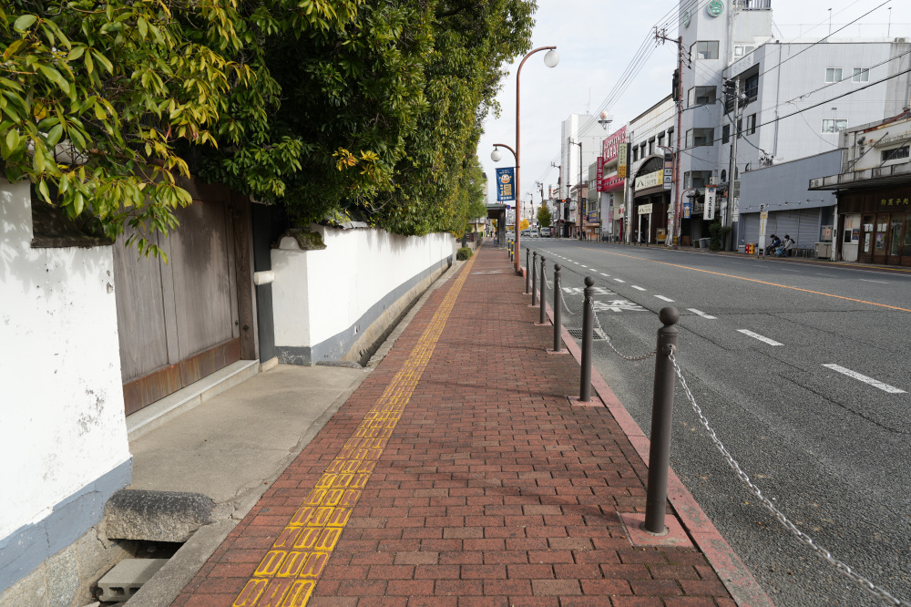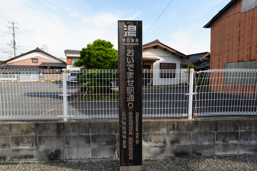 井上公園内の足湯は、駅を出て正面の「おいでませ駅通り」をまっすぐ進んで行きます。湯田温泉街に続く道は赤色に舗装されており、道なりに歩くだけで迷わず進めるのがポイントです!