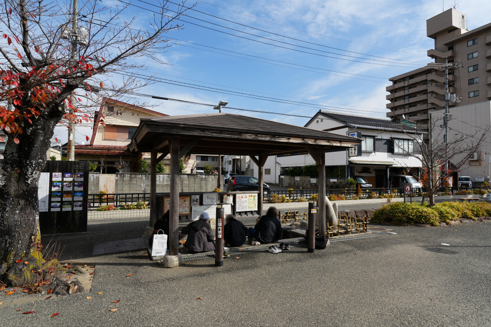こちらの足湯には囲いがあり、通りからは中が見えにくい造りになっているので、人通りの多い時間帯でも落ち着いて利用できますよ!