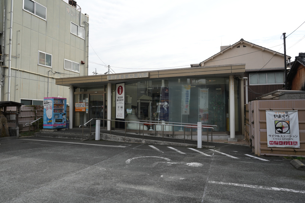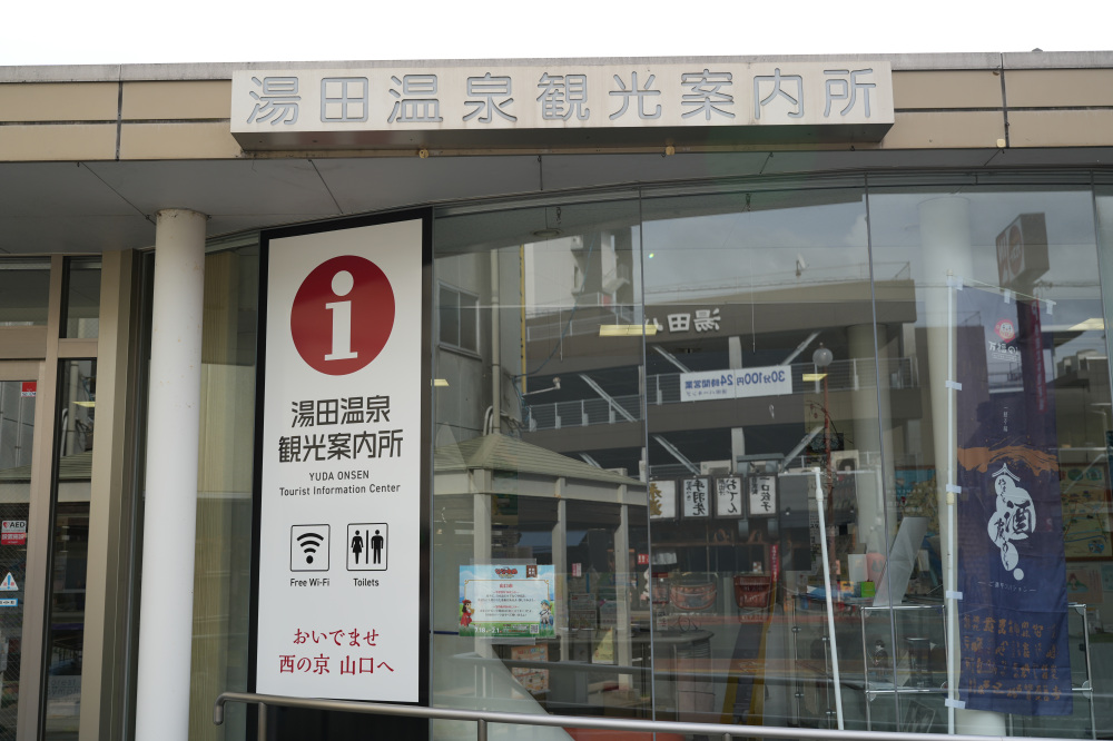 井上公園から徒歩2分(110m)ほど、湯田温泉のメインストリート「湯の町通り」沿いに湯田温泉観光案内所があります。