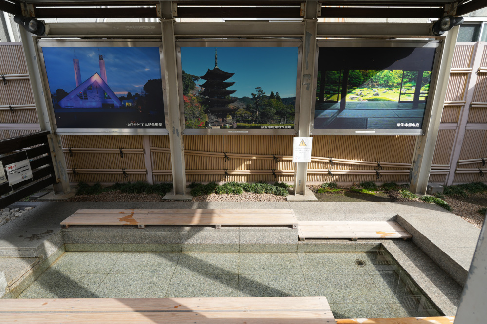 JR湯田温泉駅に併設された足湯は、列車で湯田温泉を訪れた人が最初に出会うウェルカム足湯!