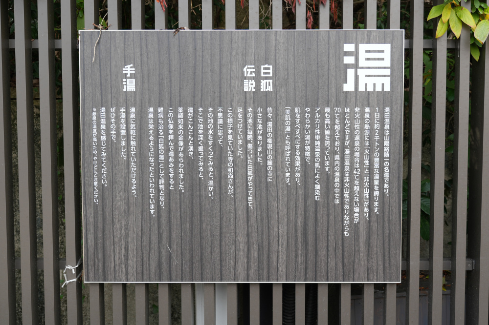 ある夜、寺の池に一匹の白狐が現れ、傷ついた足を毎晩その水に浸していました。不思議に思った和尚が池の水をすくうと温かく、掘り返してみると温泉が湧き出し、さらに薬師如来の金像まで現れたんだとか!