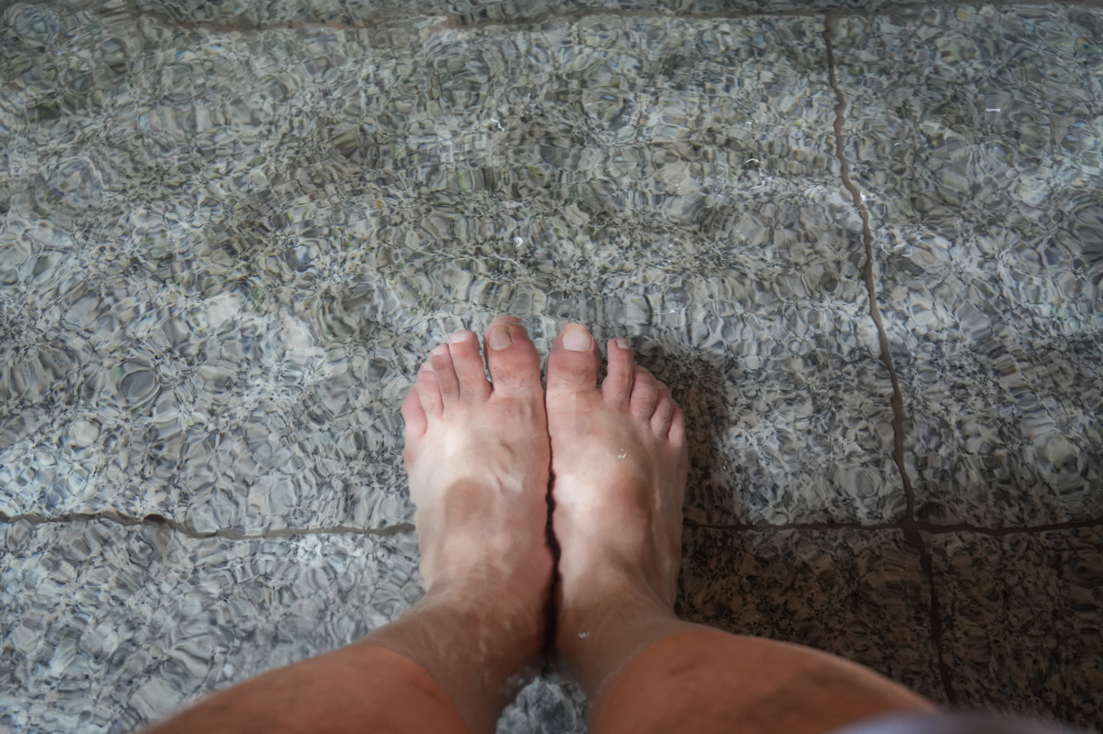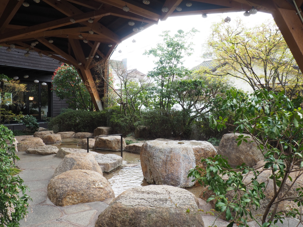 湯温はぬるめの体感で、長く浸かっていられる心地よさでした。街歩きで疲れた足を、時間をかけてじっくり温めてリセットできますよ