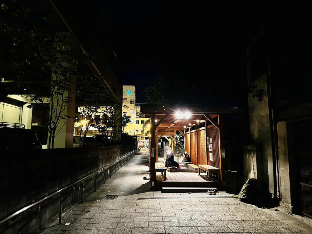 ④無料足湯|湯の香通り:夜のライトアップでさらに情緒ある雰囲気に