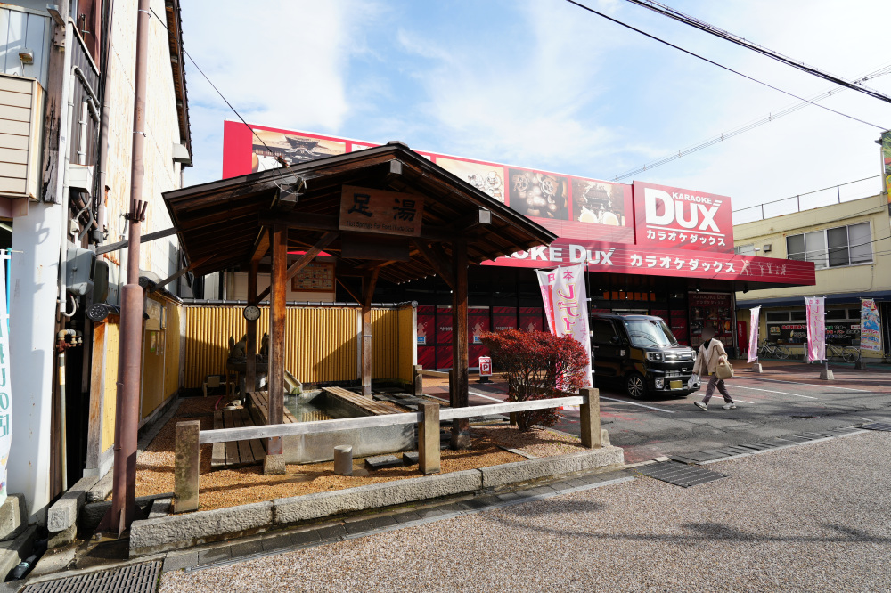 カラオケ店の駐車場の一角にあるのが「湯の町通りの足湯」です。