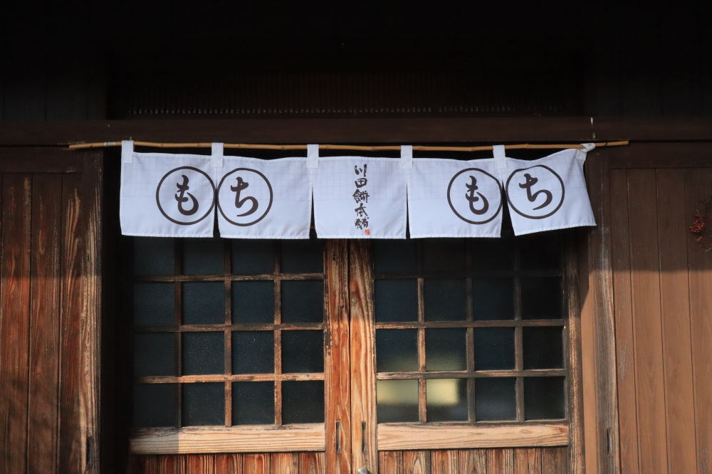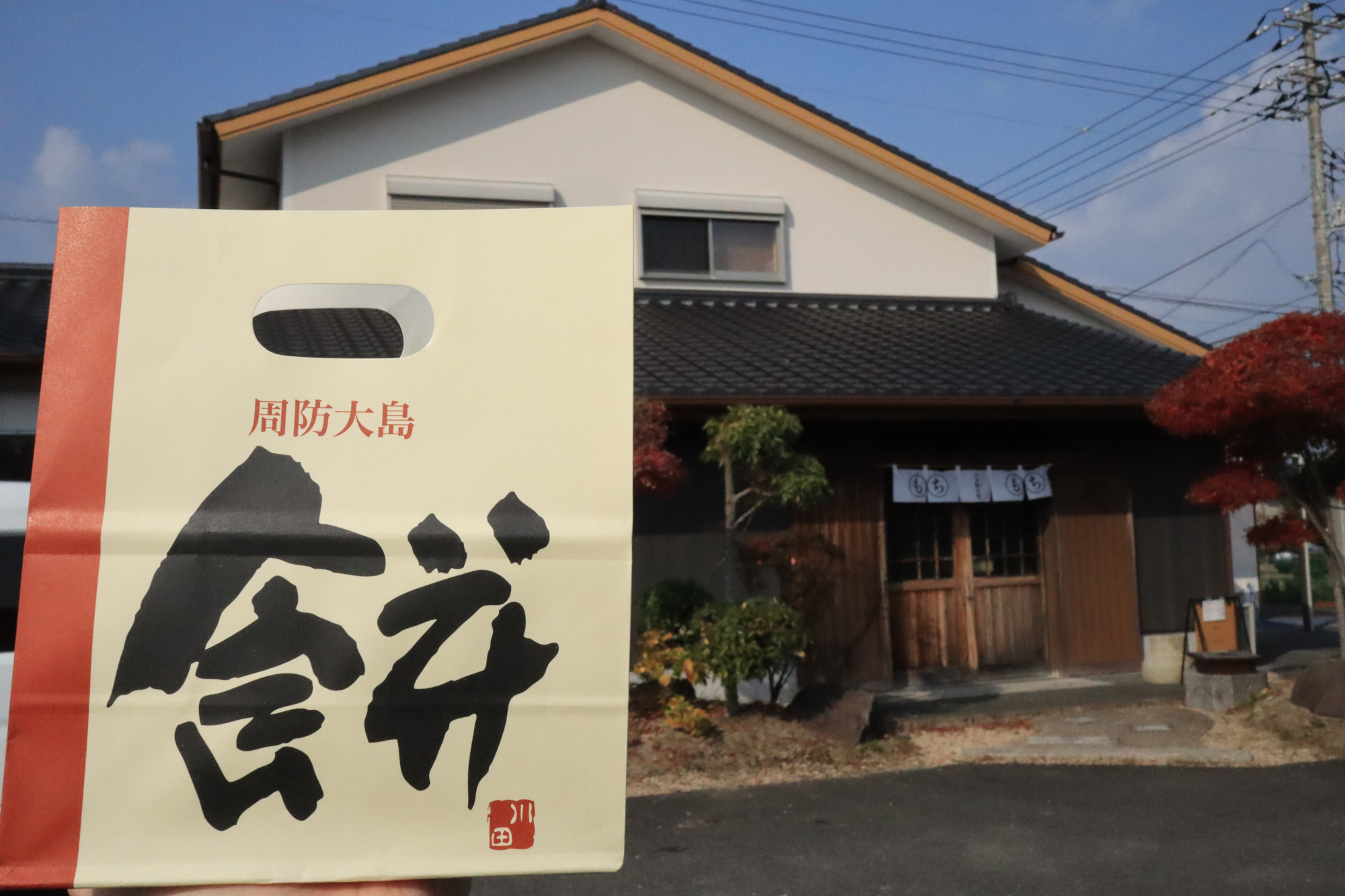 大島大橋から車で15分の場所にある「川田餅本舗」は、昭和8年創業の歴史ある老舗です。