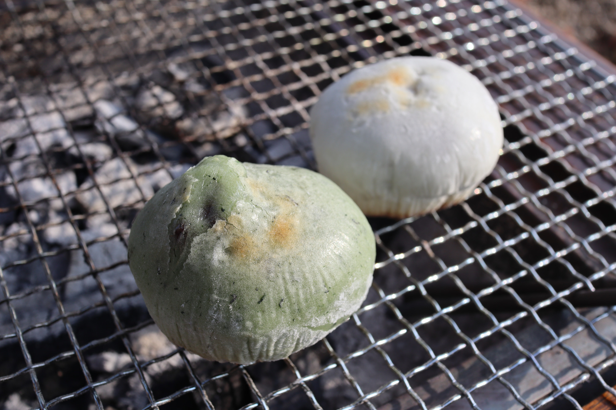 今回は、よもぎと白餅の2種類の田舎あん餅をいただきました。