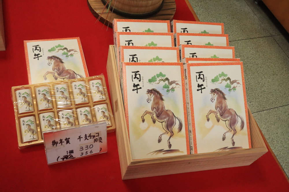 お店の中央では、和菓子以外にもせんべいや干支にちなんだチョコまで揃い、思わず目移りしてしまうほど豊富なラインナップ。