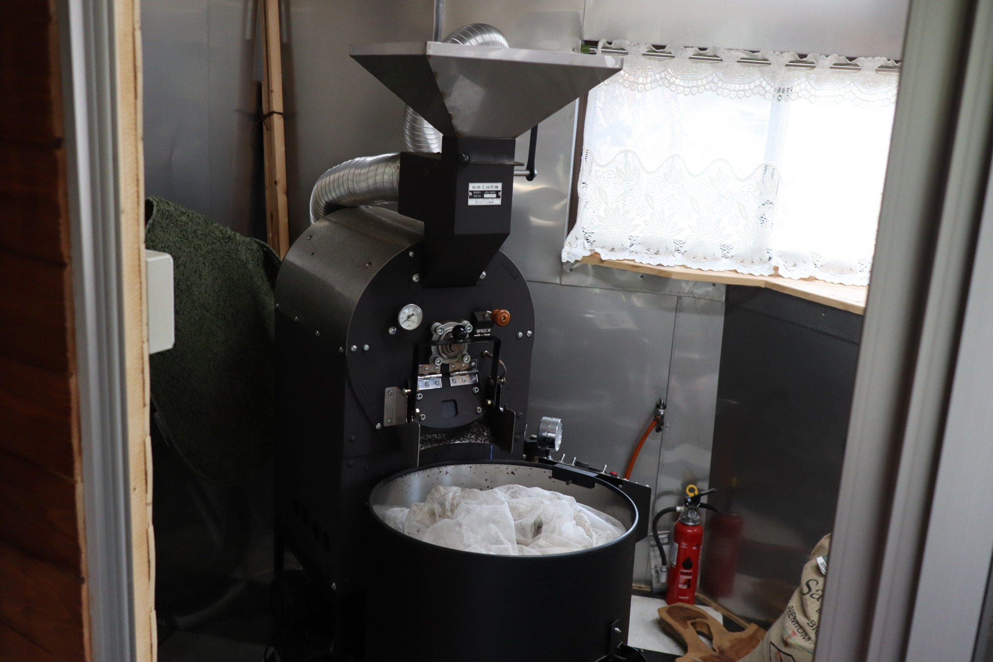 焙煎機のそばからは、香ばしい珈琲豆の香りがふわりと漂い、とても心落ち着く空間が広がっています。