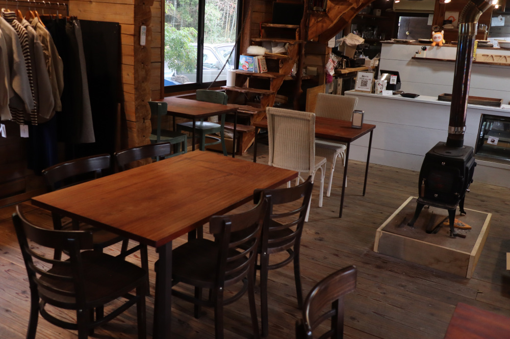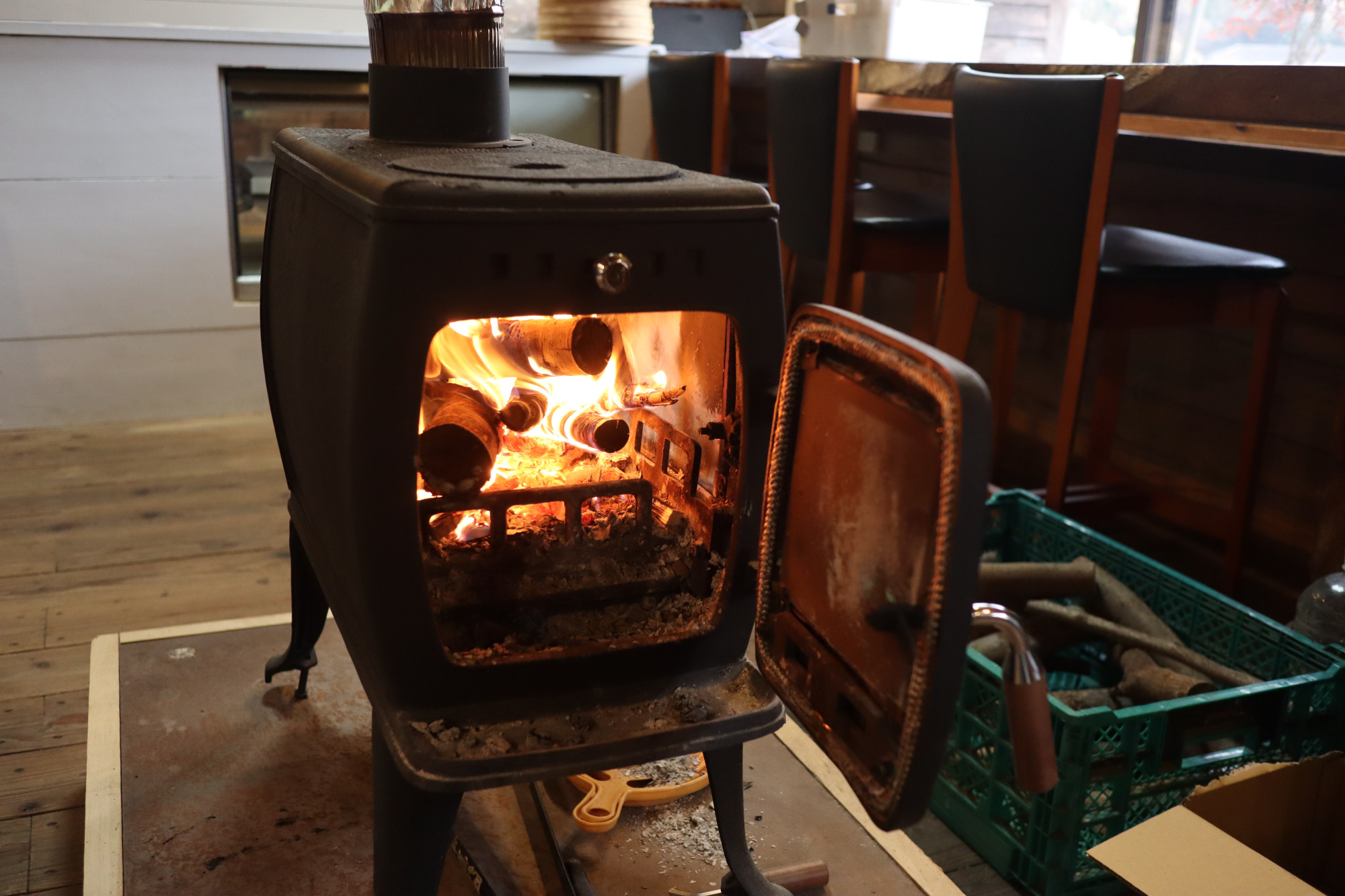 店内には薪ストーブも設置されており、薪がパチパチとはぜる音が心地よく響き、自然と気持ちが落ち着きます。
