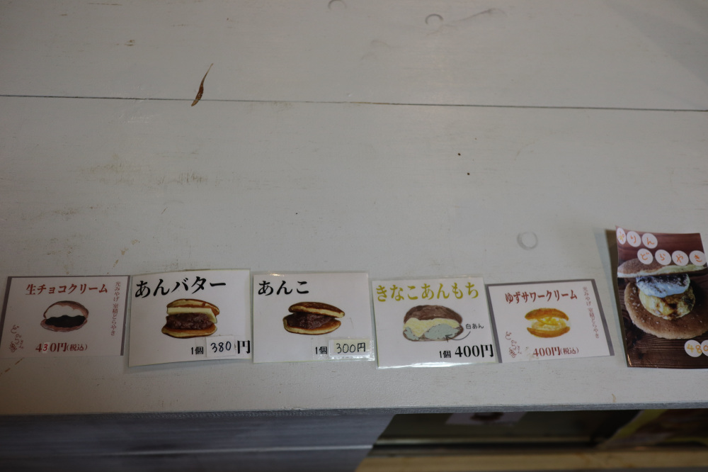 どら焼きのメニューは種類豊富。定番のあんこをはじめ、きなこあんもちなど、どれにしようか迷ってしまうラインナップが揃っています。