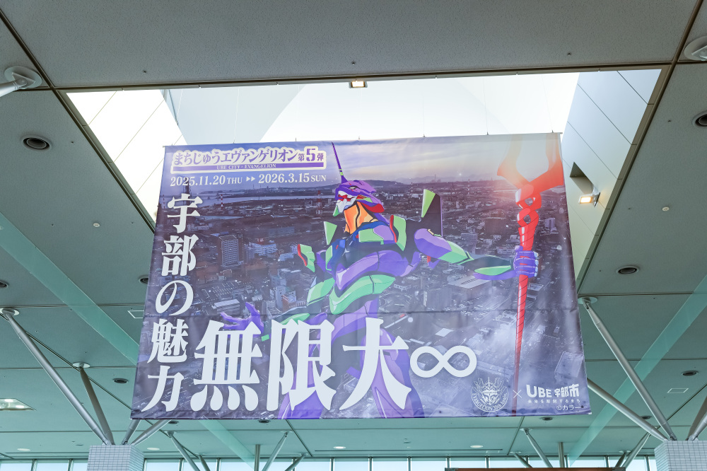 第5弾となる今回は、2025年11月20日(木)〜2026年3月15日(日)まで、宇部市のさまざまなエリアに「まちじゅうエヴァンゲリオン」の装飾や、コラボメニューが!この記事では山口宇部空港の装飾、公式ポップアップショップやその近くで楽しめるスイーツ、スタンプラリー、初号機の手の彫刻、見つけたらラッキーなラッピングバスなど、イベントの魅力を紹介します。