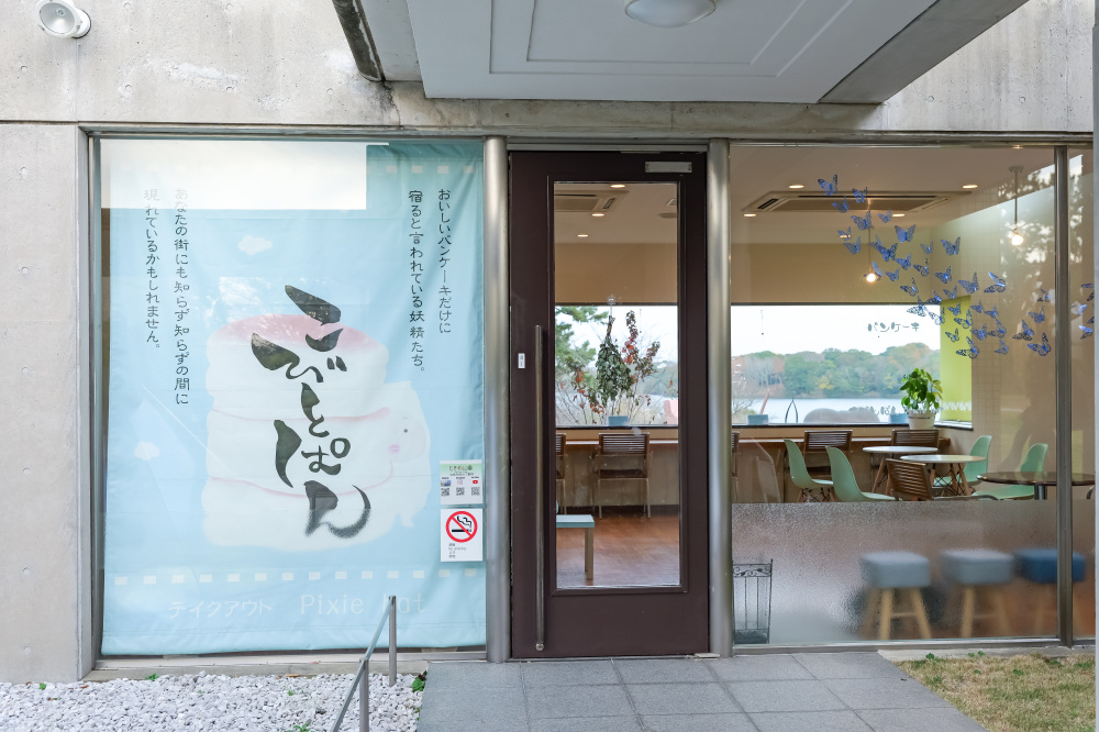 ときわ公園「世界を旅する植物館」のすぐ横にあるパンケーキ店「こびとぱん pixie hat(ピクシーハット)」では、マリをイメージした『マリのラズベリーパンケーキ(¥900)』と『マリのベリーラテ(¥650)』を提供!ラズベリー&ストロベリーフレーバーになっていて、ピンクやレッドのカラーがとっても可愛いんです。