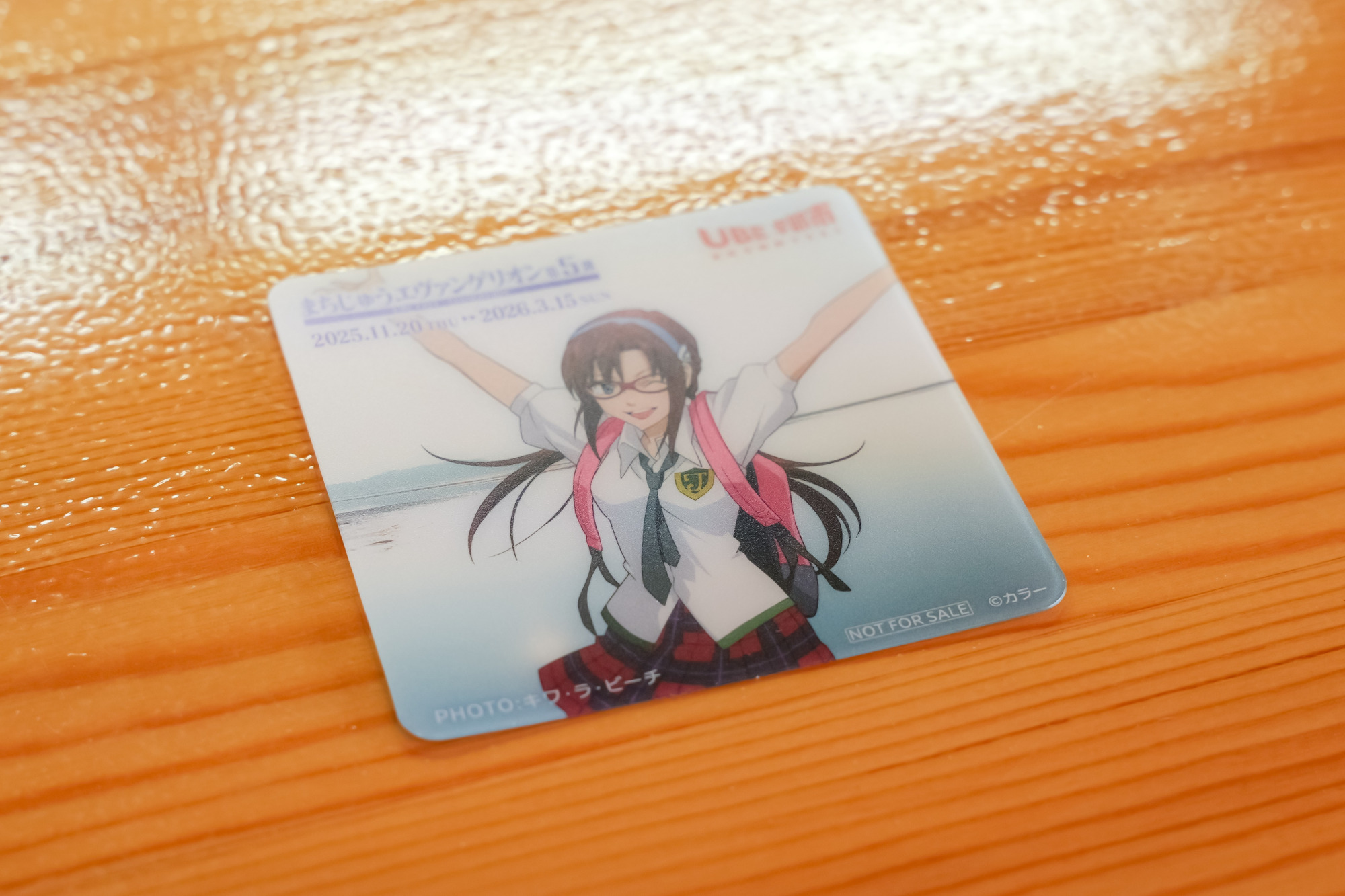 さらに「まちじゅうエヴァグルメフェア」の参加店舗では、コラボメニューを頼むと、限定のコラボコースターをGETできます。描きおろしイラストのキャラクターの背景には、宇部市のスポットがあしらわれていますよ。