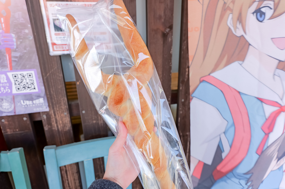 沖縄県産の塩や山口県産の小麦・せときららを使っているというパンは、一口食べた瞬間に香ばしさに感動。ほんのり効いた塩気とパリッと歯ごたえの良い皮がたまらず、大きめサイズのパンながら、一人でもあっという間に完食してしまう美味しさです…… 。エヴァンゲリオン好きの人はもちろん、そうでない相手にも買って渡したくなる味わいでした。