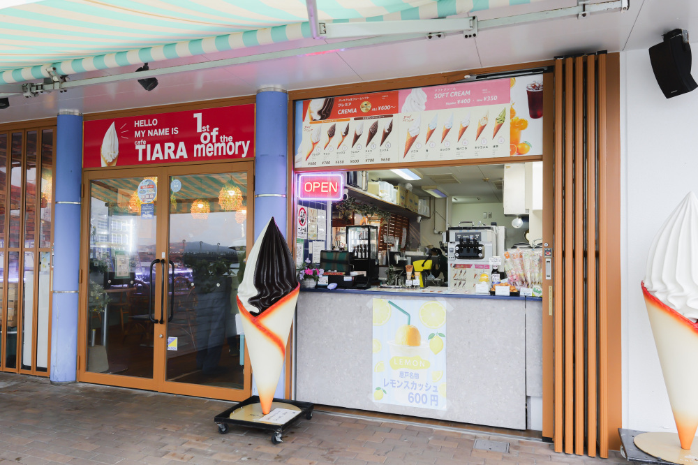 1つ目は、唐戸市場の近くにある商業施設・カモンワーフ内にある「たこ焼き唐戸きむら&cafe TIARA」。キッチンカーで人気を博したお店が開いた実店舗で、たこ焼きやソフトクリーム、鶏卵焼など、ランチにもおやつタイムにもぴったりのメニューを味わえます。