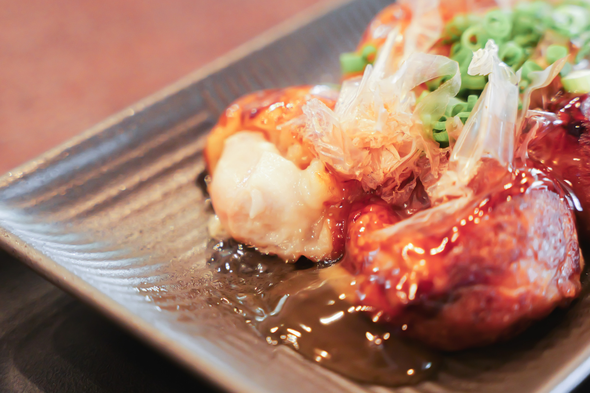 お店オリジナルの出汁ソースが使われていて、香ばしい色合いの生地にうっとり……。つややかな見た目に食欲をそそられます。