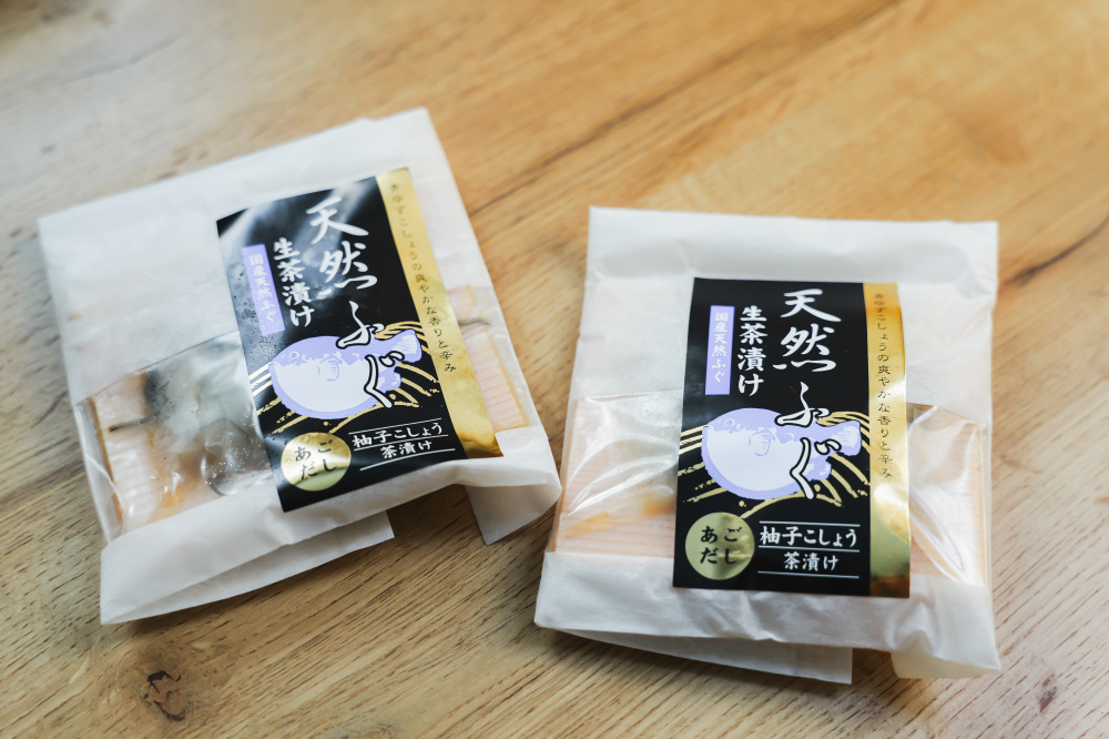 「天然ふぐ柚子こしょう生茶漬け」は、2パック入りで800円!保冷バッグに入った状態で出てくるため、すぐに溶けてしまう心配がありません。