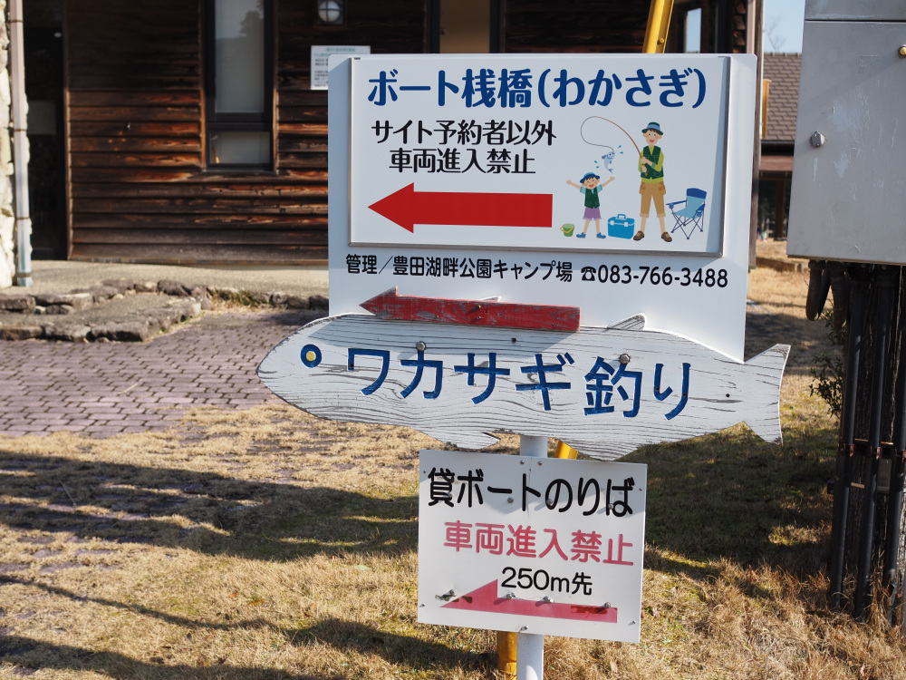 豊田湖畔公園の大駐車場に車を止め、地図を確認しワカサギ釣りができる桟橋を目指して歩いていきます。