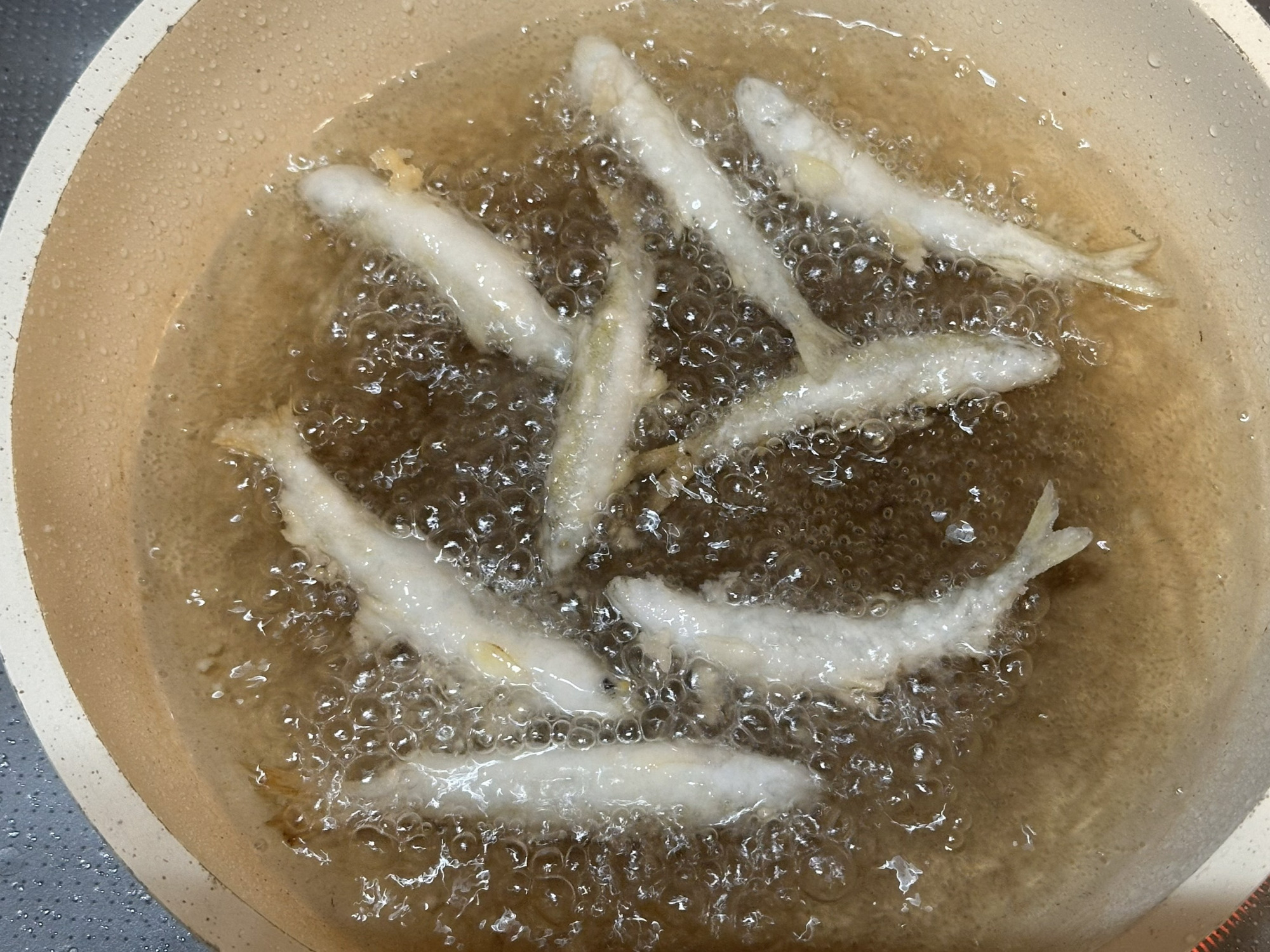 その際に、「唐揚げにすると簡単でおいしいよ」とも教えてくださったのでワカサギたちを唐揚げにしていきます