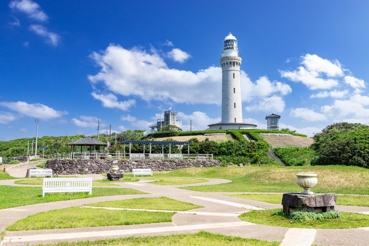 角島の西端に位置し、日本海側初の洋式灯台が立つ公園。