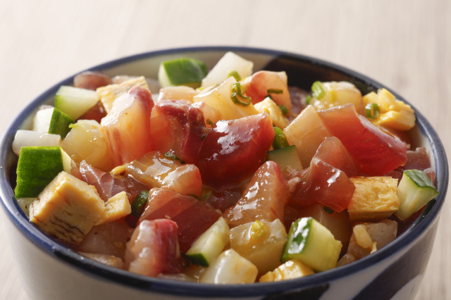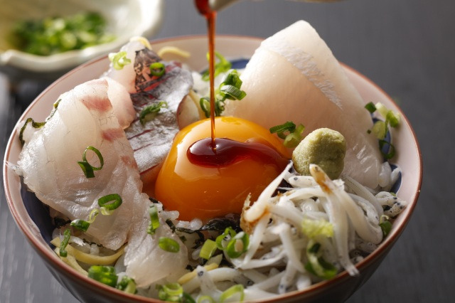 「長州海鮮まぶし」は、山口県の旬の魚介をたっぷり使ったご当地グルメ。山口県は、日本海、瀬戸内海と性質の違う2つの漁場をもっており、どのシーズンにも旬を迎えた美味しい魚がある、魚種の豊富さが自慢です。長州海鮮まぶしは旬の魚をご飯にのせていただきます。新鮮な魚介を使っているので、何がのっているかは当日のお楽しみ。産地に行かないと食べられない、珍しい魚に出会えるかもしれません。そんな豊かな海の幸を使った山口ならではの新ご当地グルメです。団体受入可能施設一覧2026をご確認ください