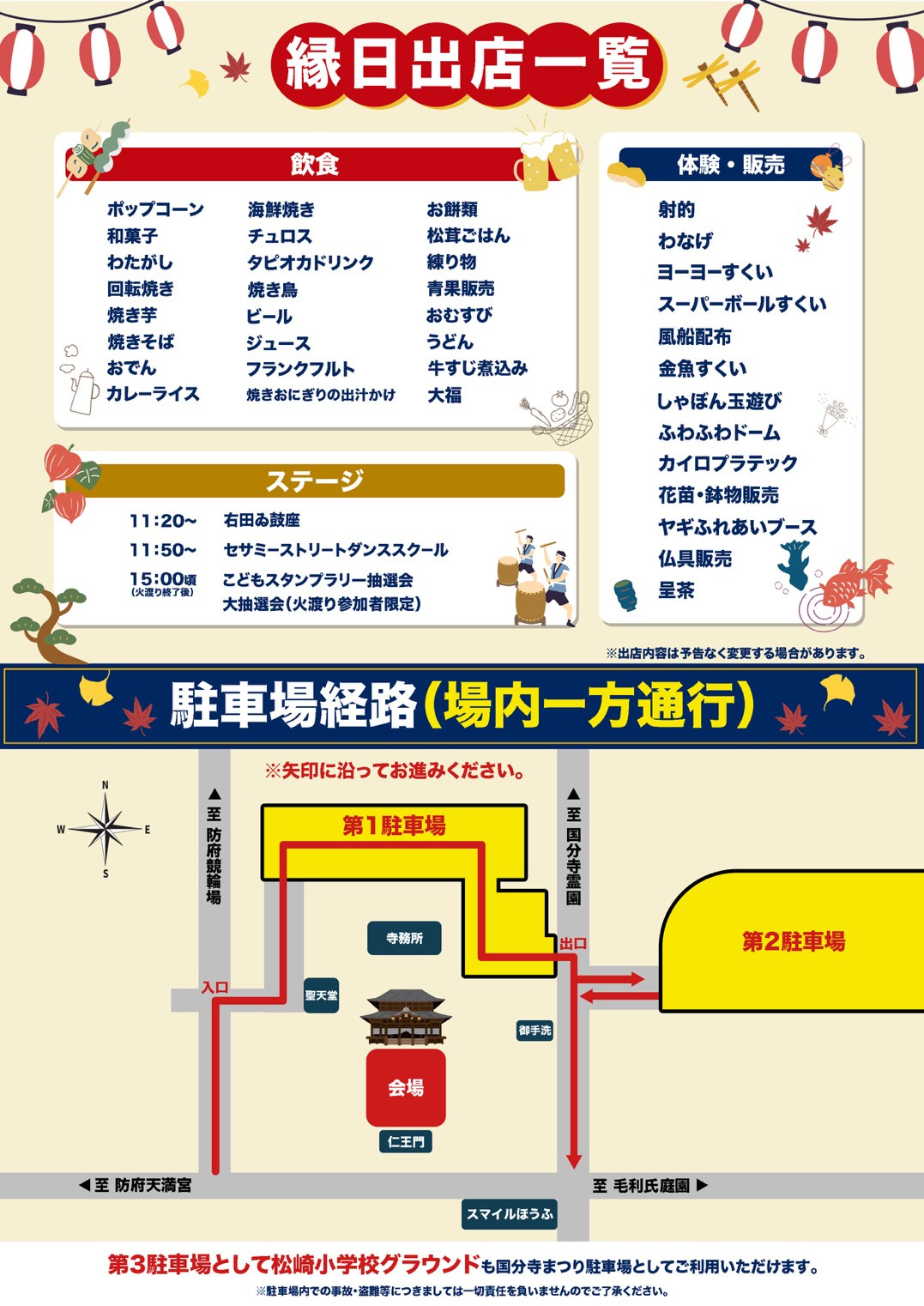 - ・JR山陽本線防府駅からバス約5分、下車後すぐ。(「阿弥陀寺行」バス「国分寺バス停」下車)