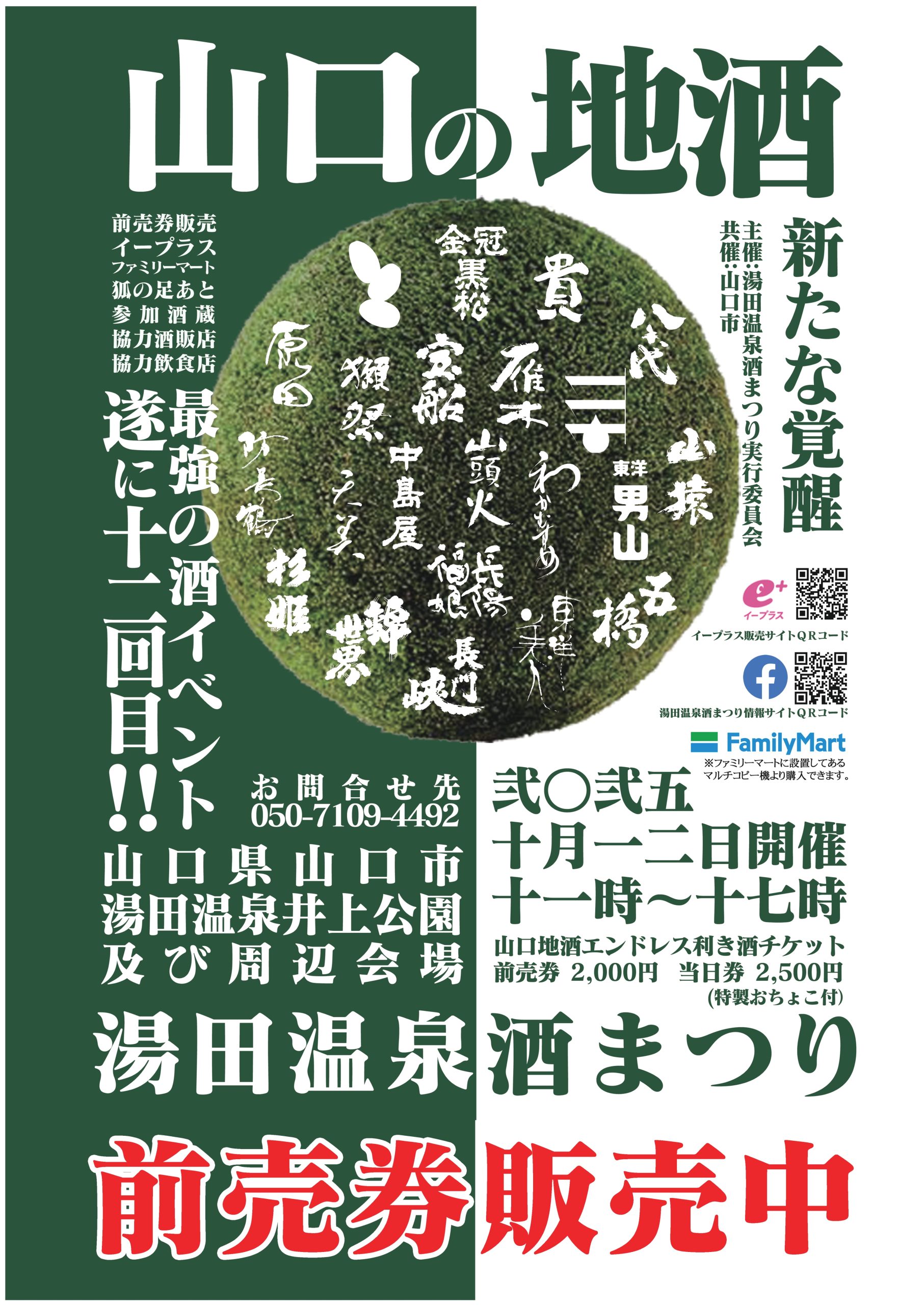 詳細は「湯田温泉酒まつりfacebook」で検索!前売り券発売中!
