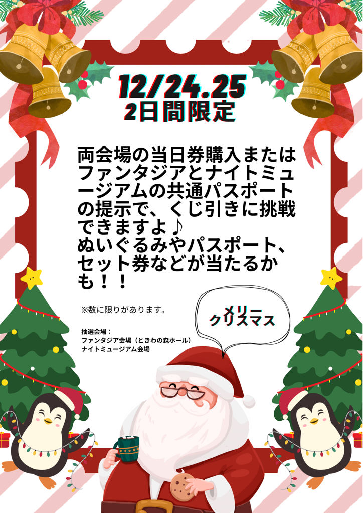 ファンタジアとナイトミュージアムの両会場の当日券購入または共通パスポートの提示で、くじ引きに挑戦!