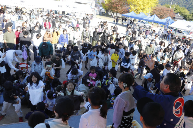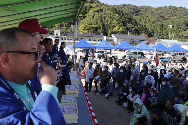 地元農林海産物の販売や各種テナントが軒を連ねるほか、保育園の遊戯に始まり大好評の農林海産物の模擬セリなど数多くのイベントが行われます。