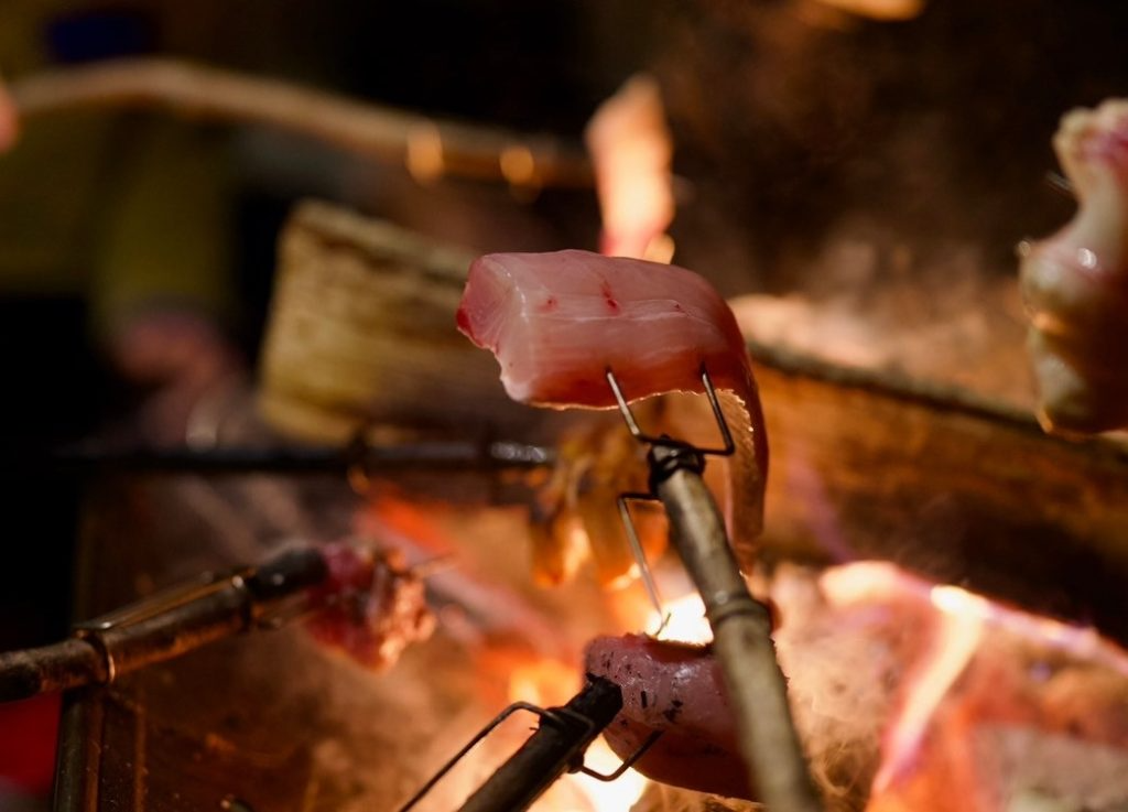専用のフォークに食材を刺して、焚き火で炙って食べるフォーキング、そのロッドを作ります。