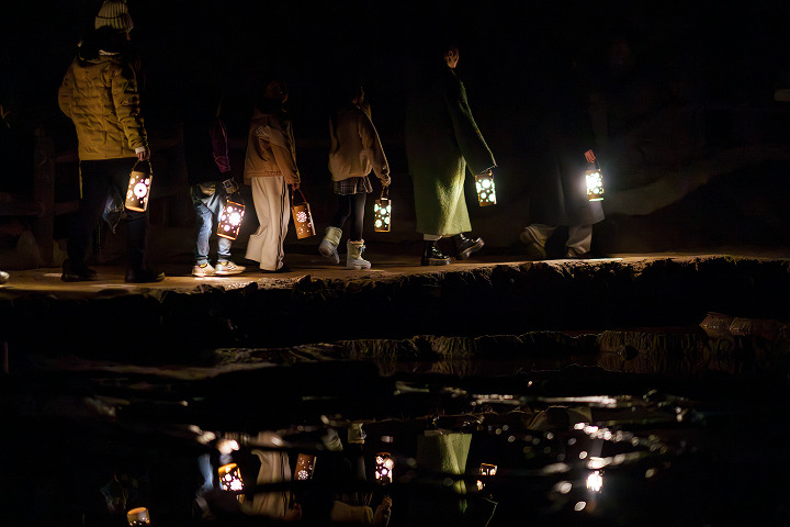 幻想的な「竹あかり」の光に導かれながら、秋芳洞の歴史と自然の美しさを堪能できるようなツアーを行います。