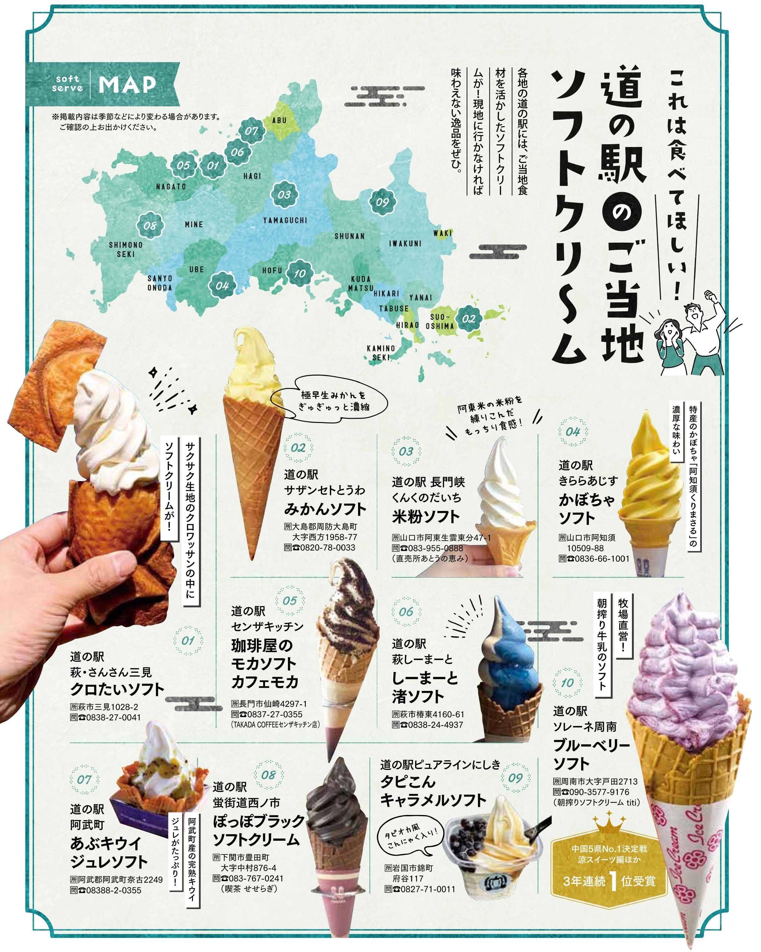 県内各地の道の駅では、各地域の食材を生かしたソフトクリームが販売されています!
