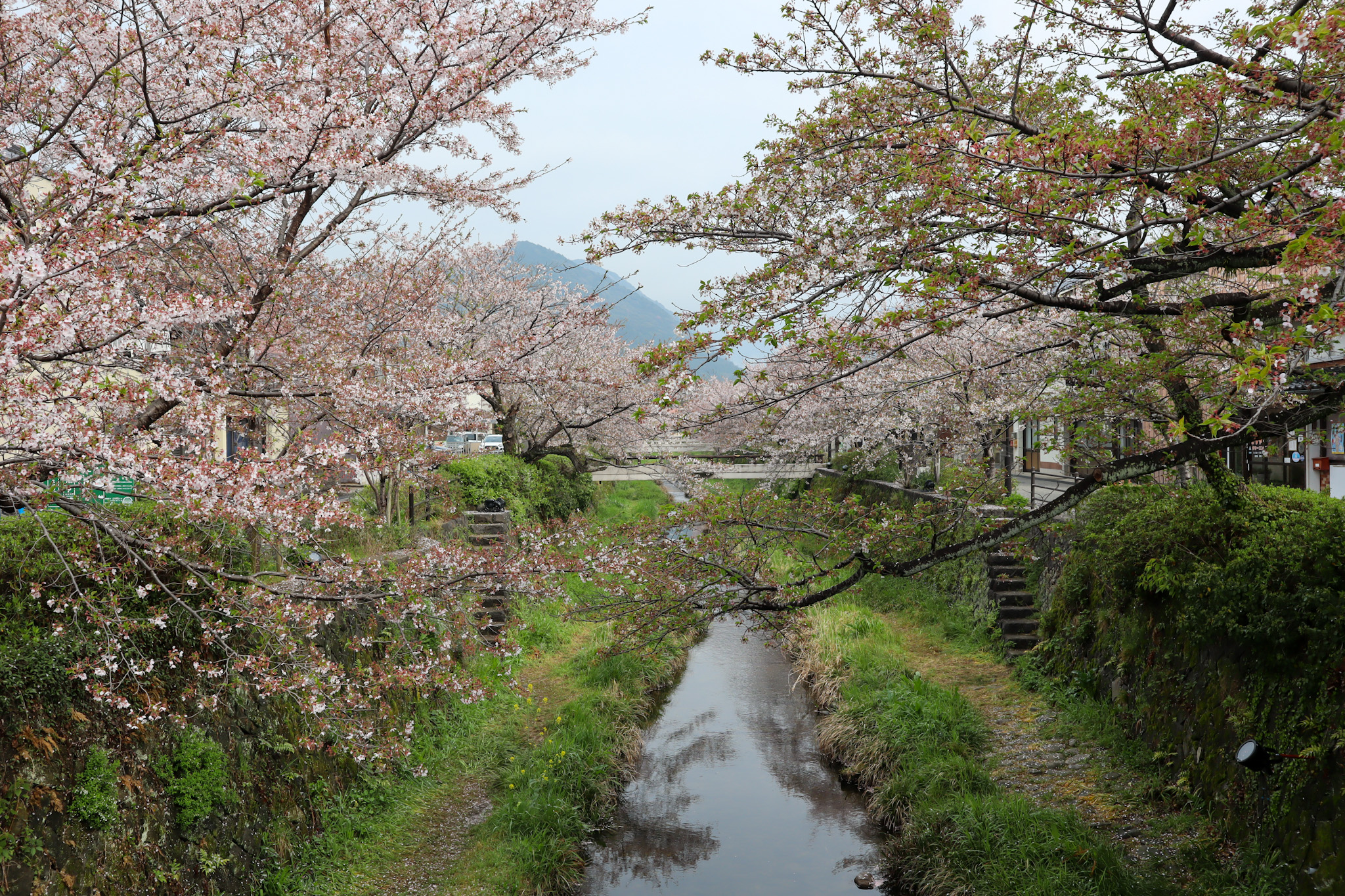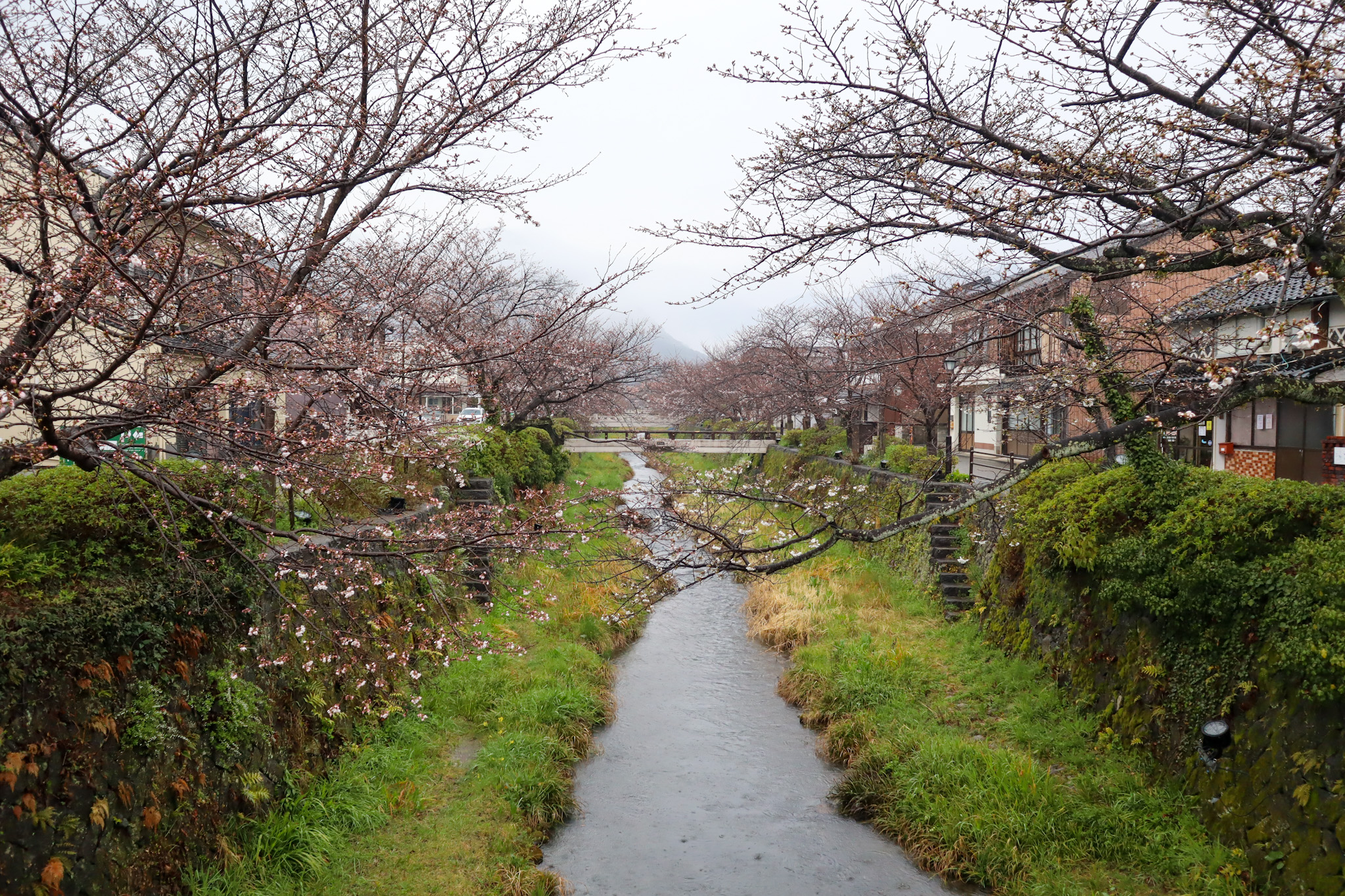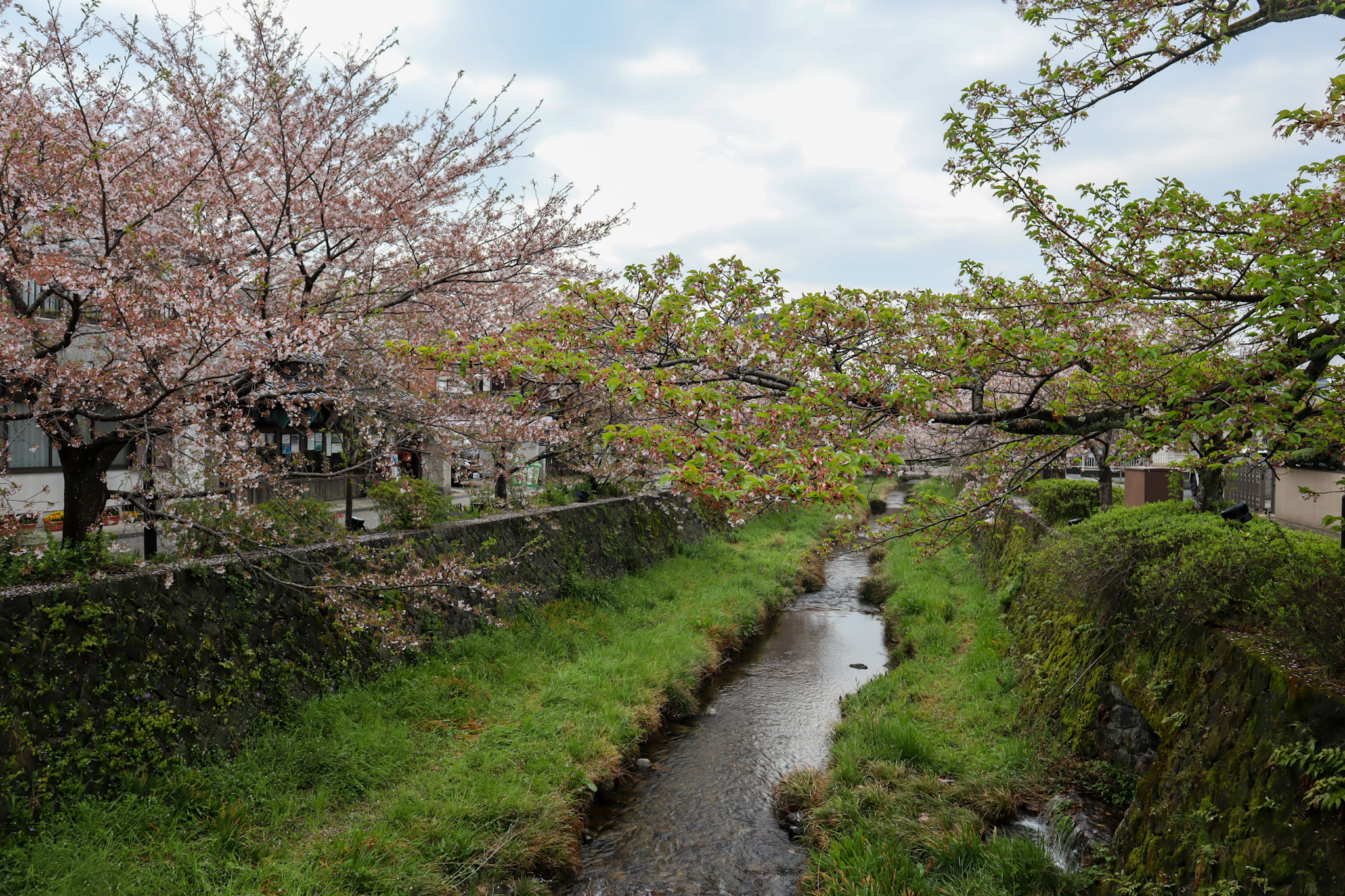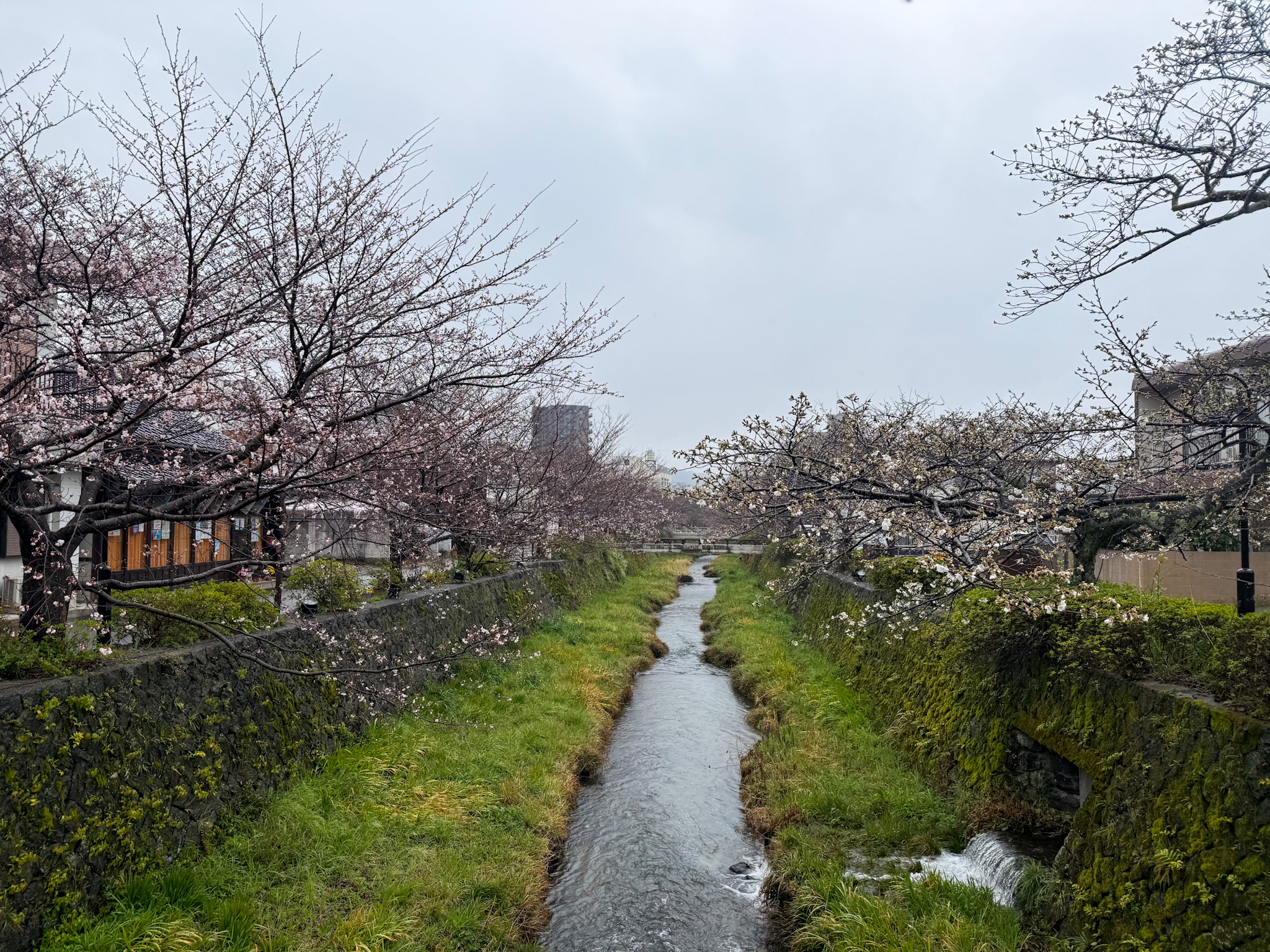 川の流れに垂れ下がる桜、両岸に建つ古い町屋との景観がノスタルジックで、川のせせらぎを眺めながらゆっくりとした時間を過ごす事が出来ます。 川沿いにはおしゃれなカフェや飲食店も。